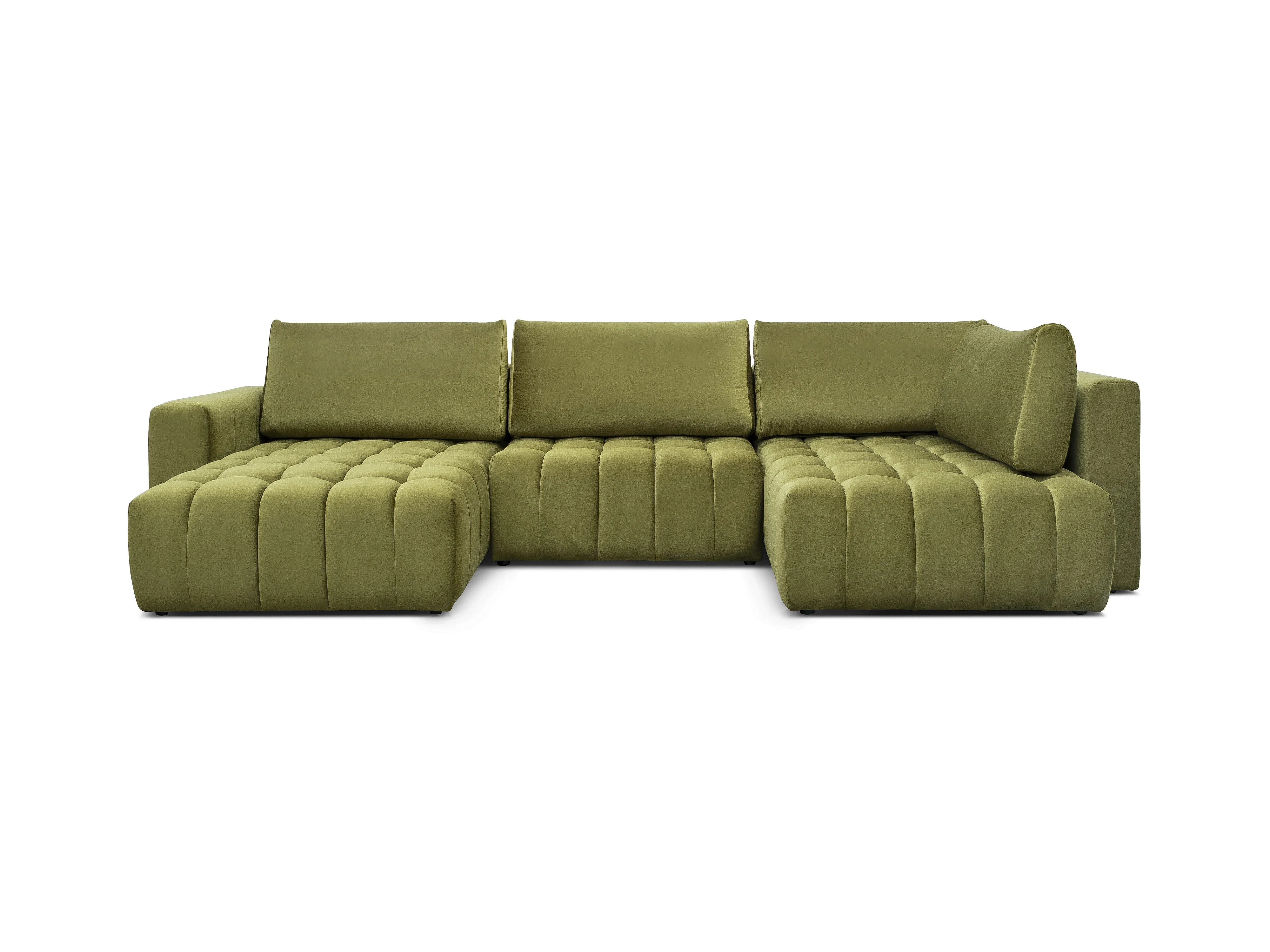 Canapé panoramique convertible design capitonné velours vert kaki méridienne gauche Boston 350cm