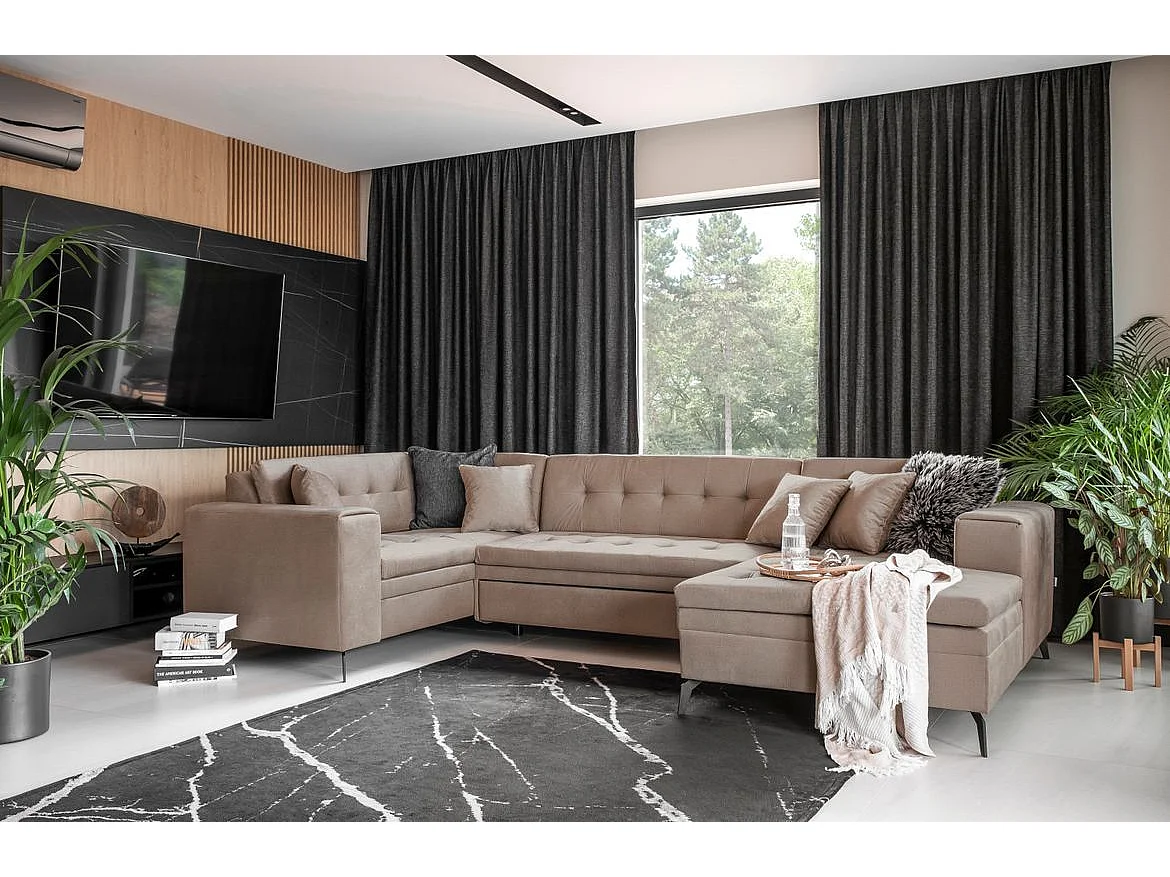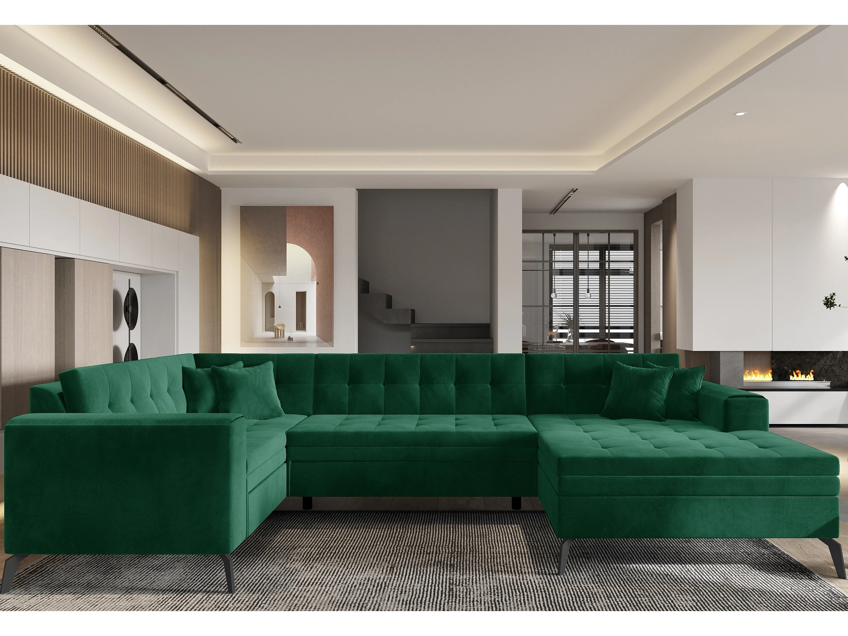 Canapé panoramique convertible droit tissu vert matelassé Bonty 340cm