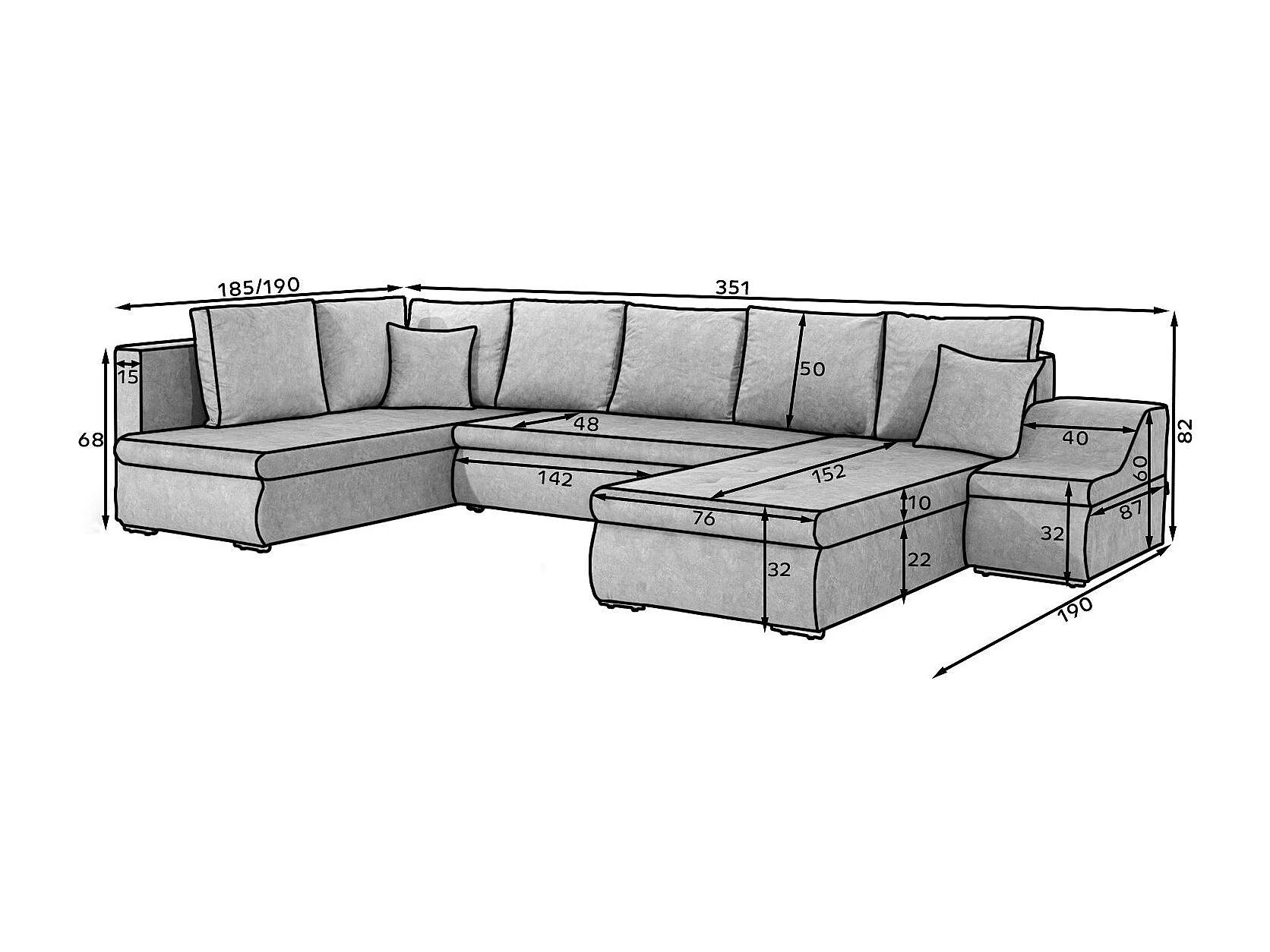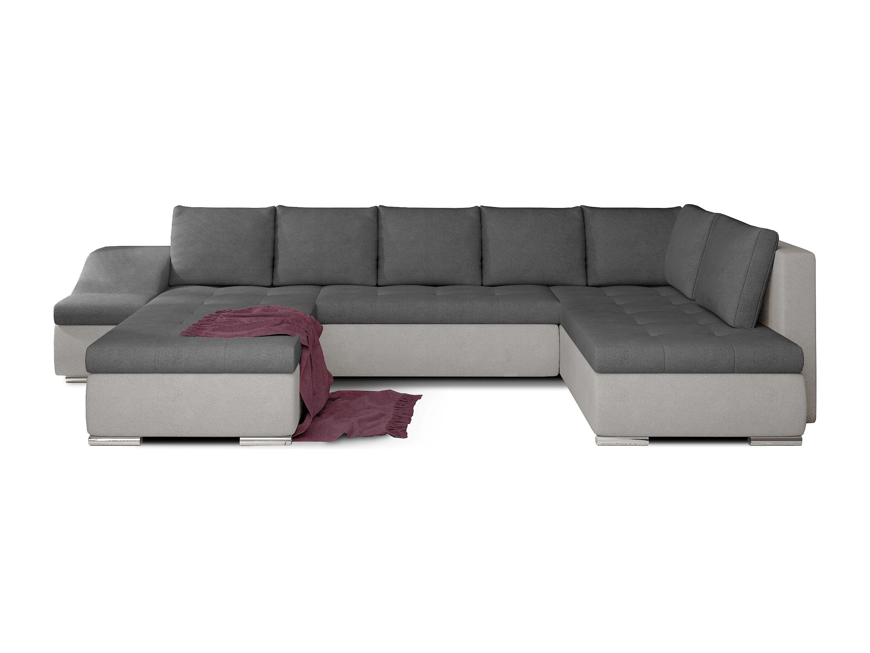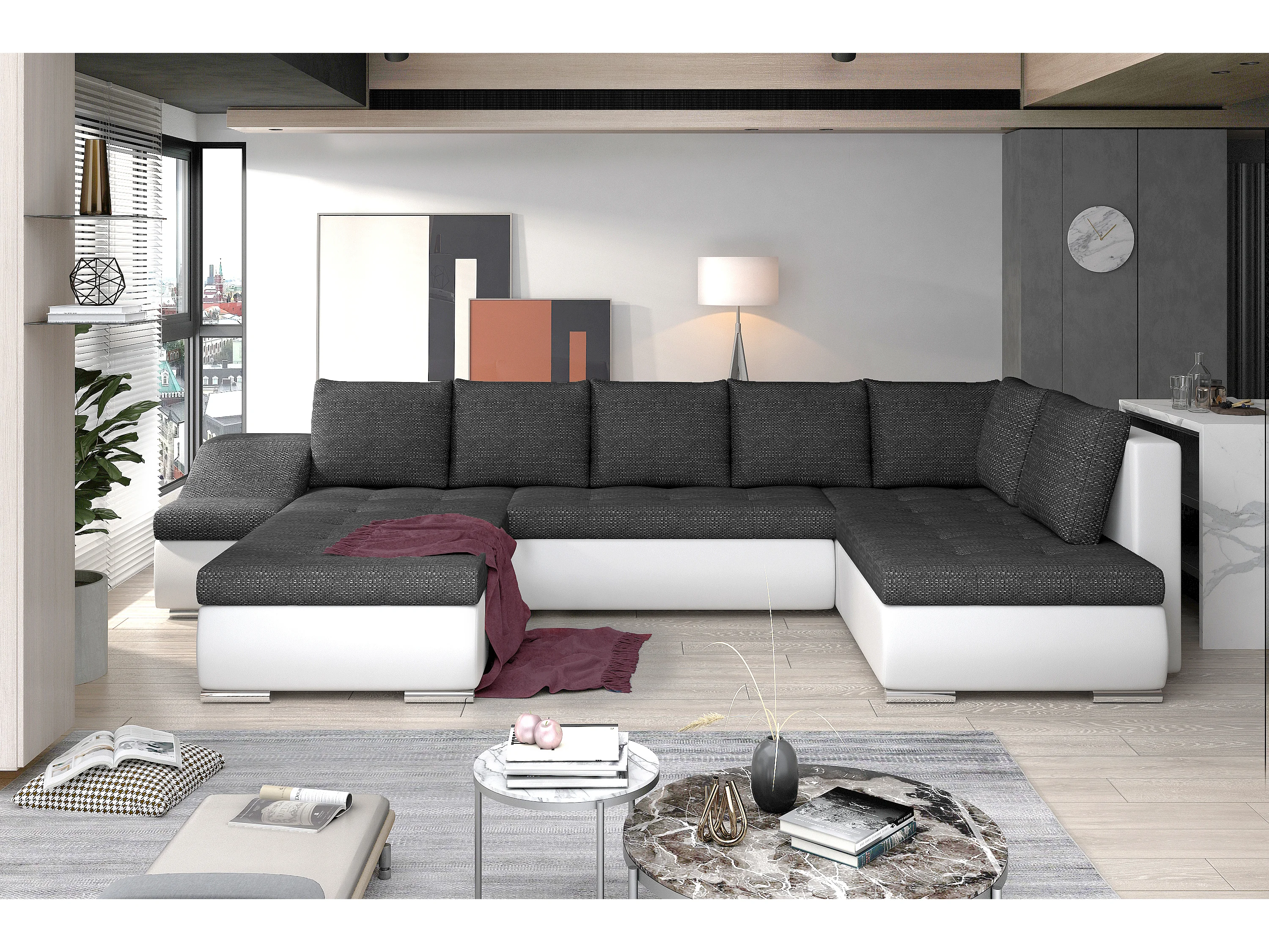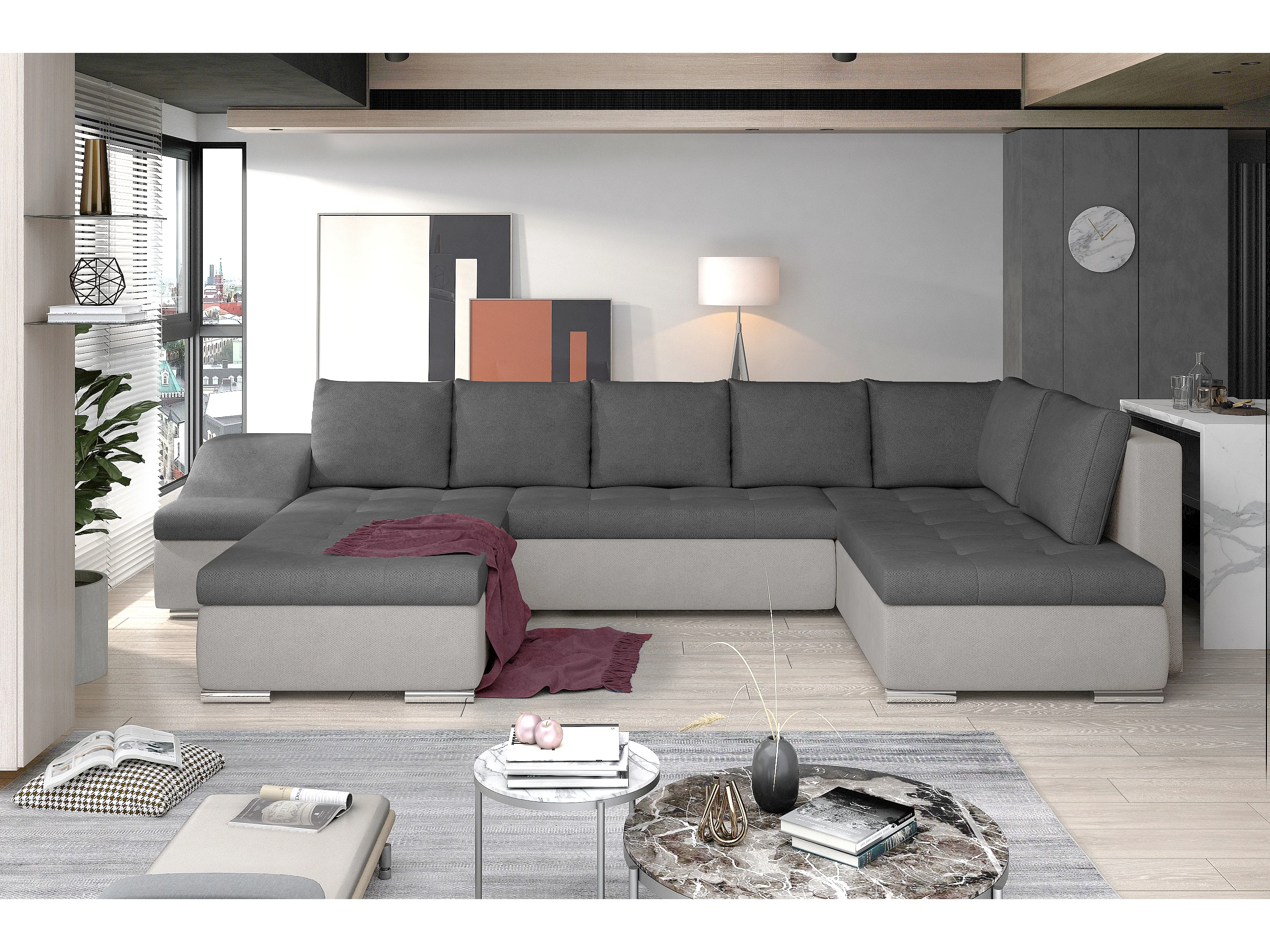 Canapé panoramique convertible JONAZ simili cuir, tissu - Rangement integré-Gris/Gris foncé-Méridienne A gauche