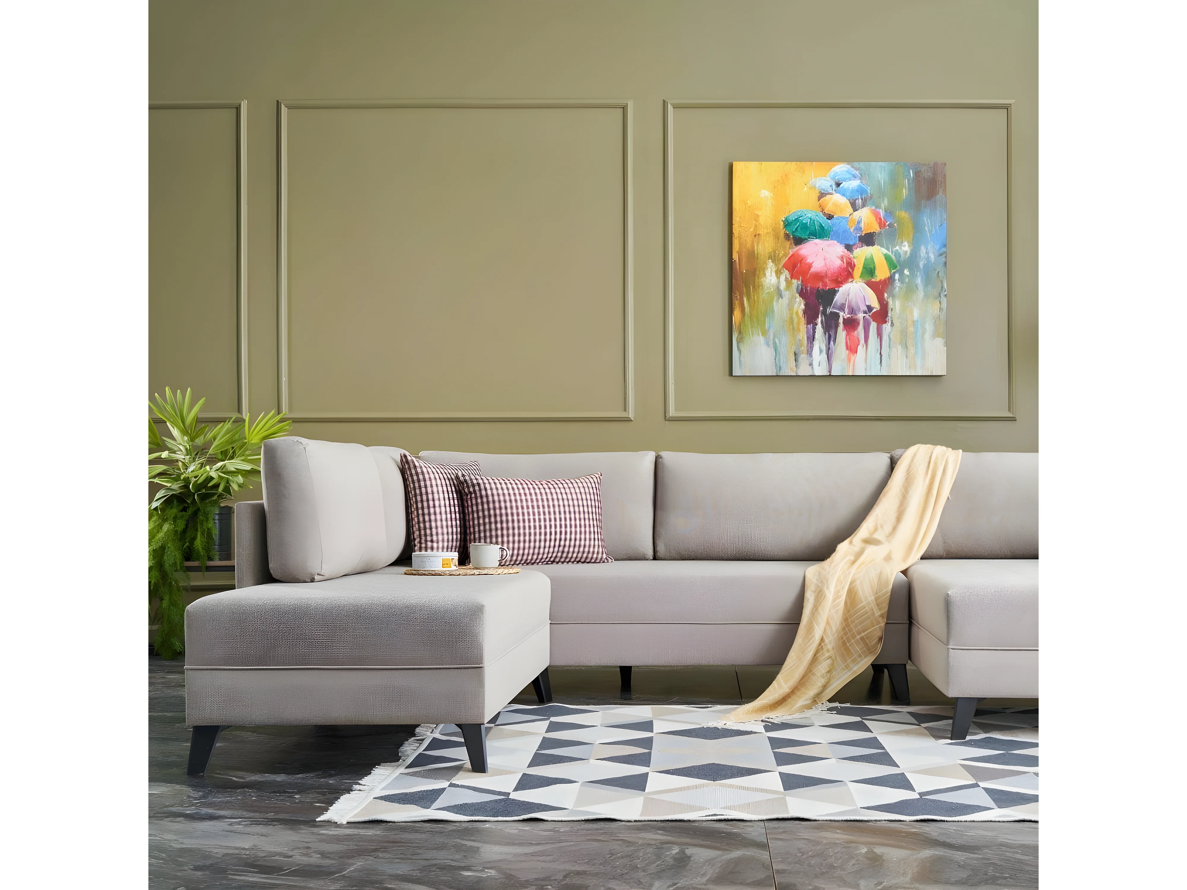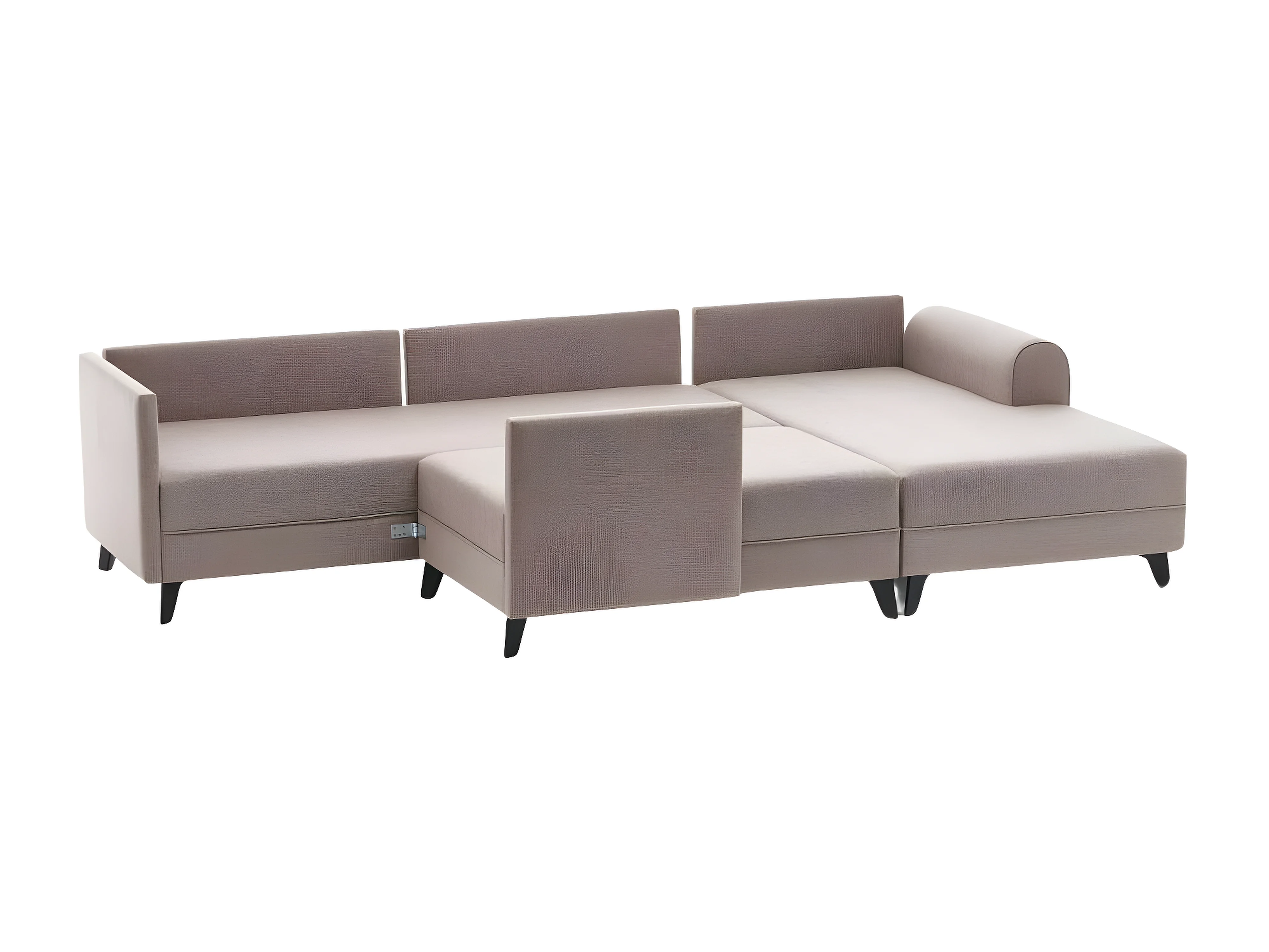 Canapé panoramique d'angle à gauche modulable Lalardie Tissu Blanc crème