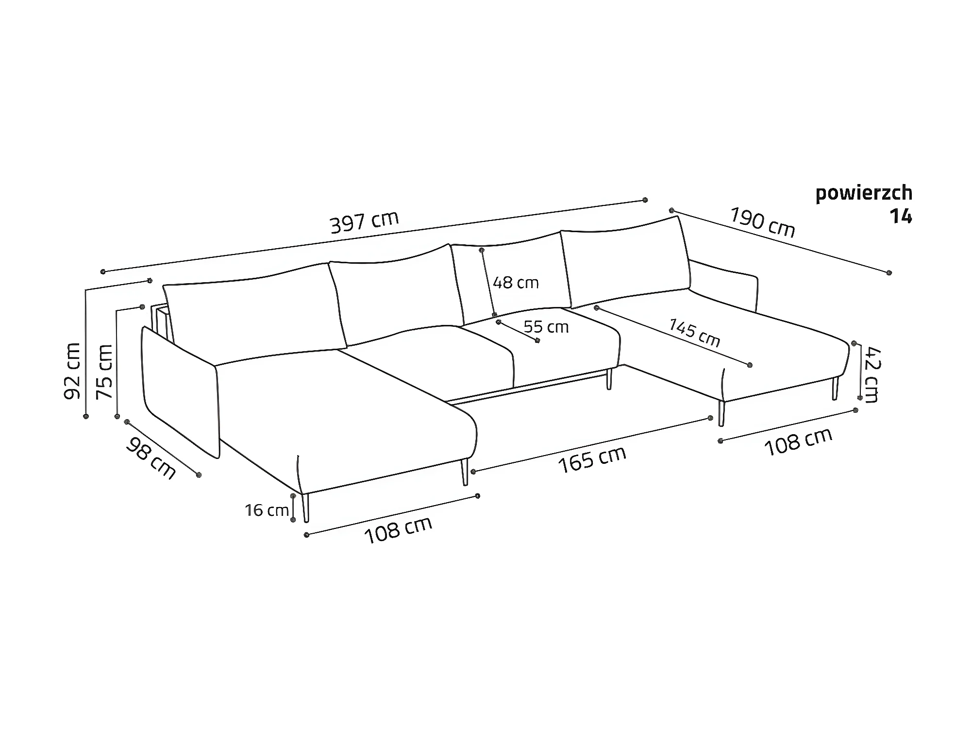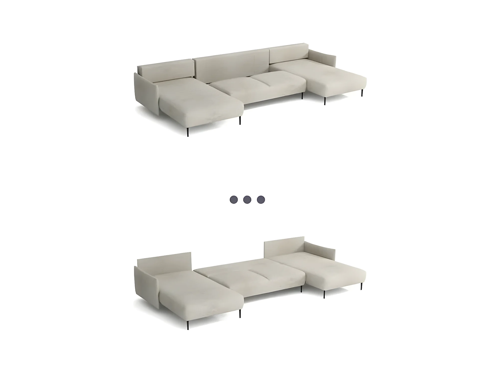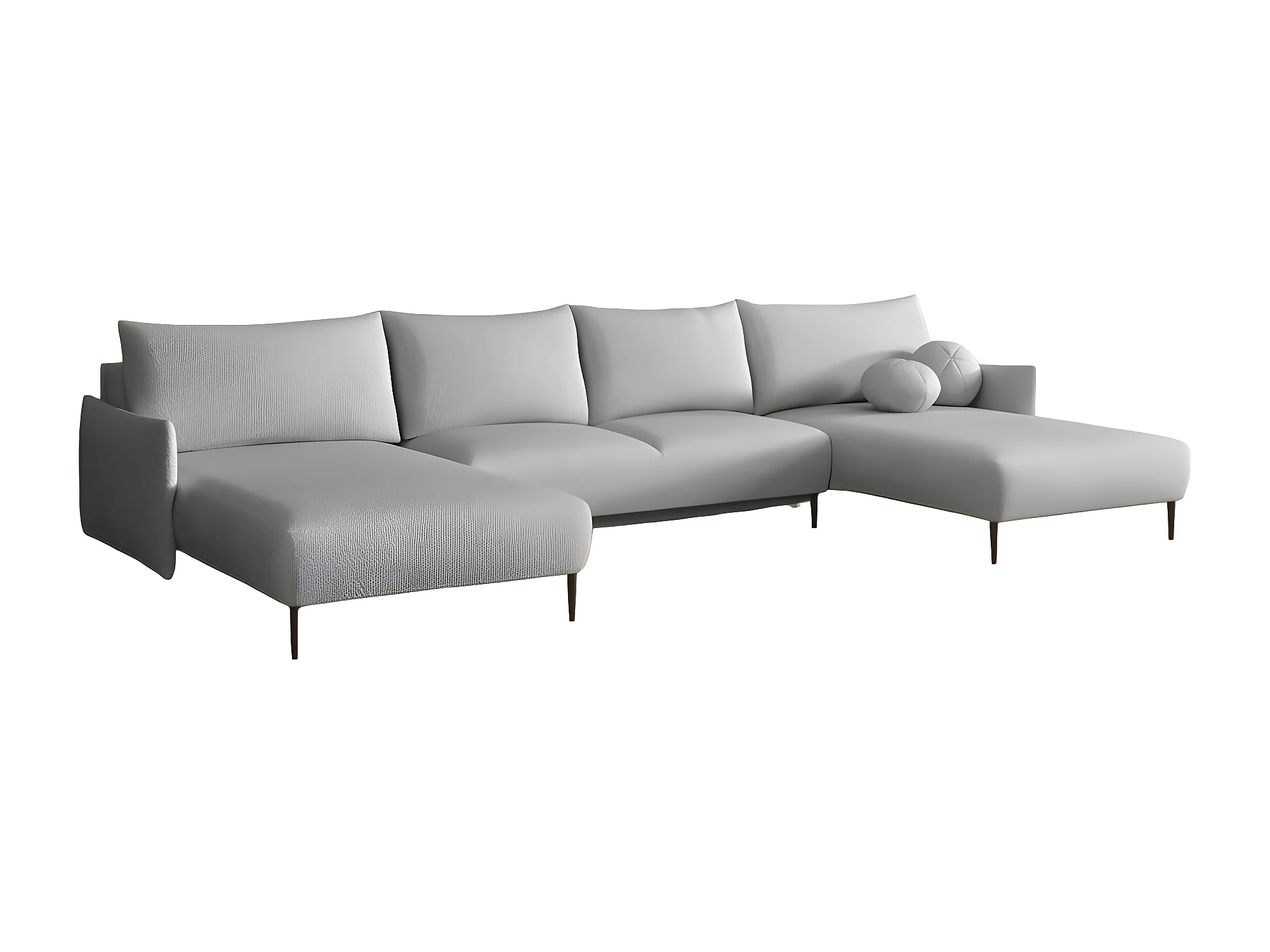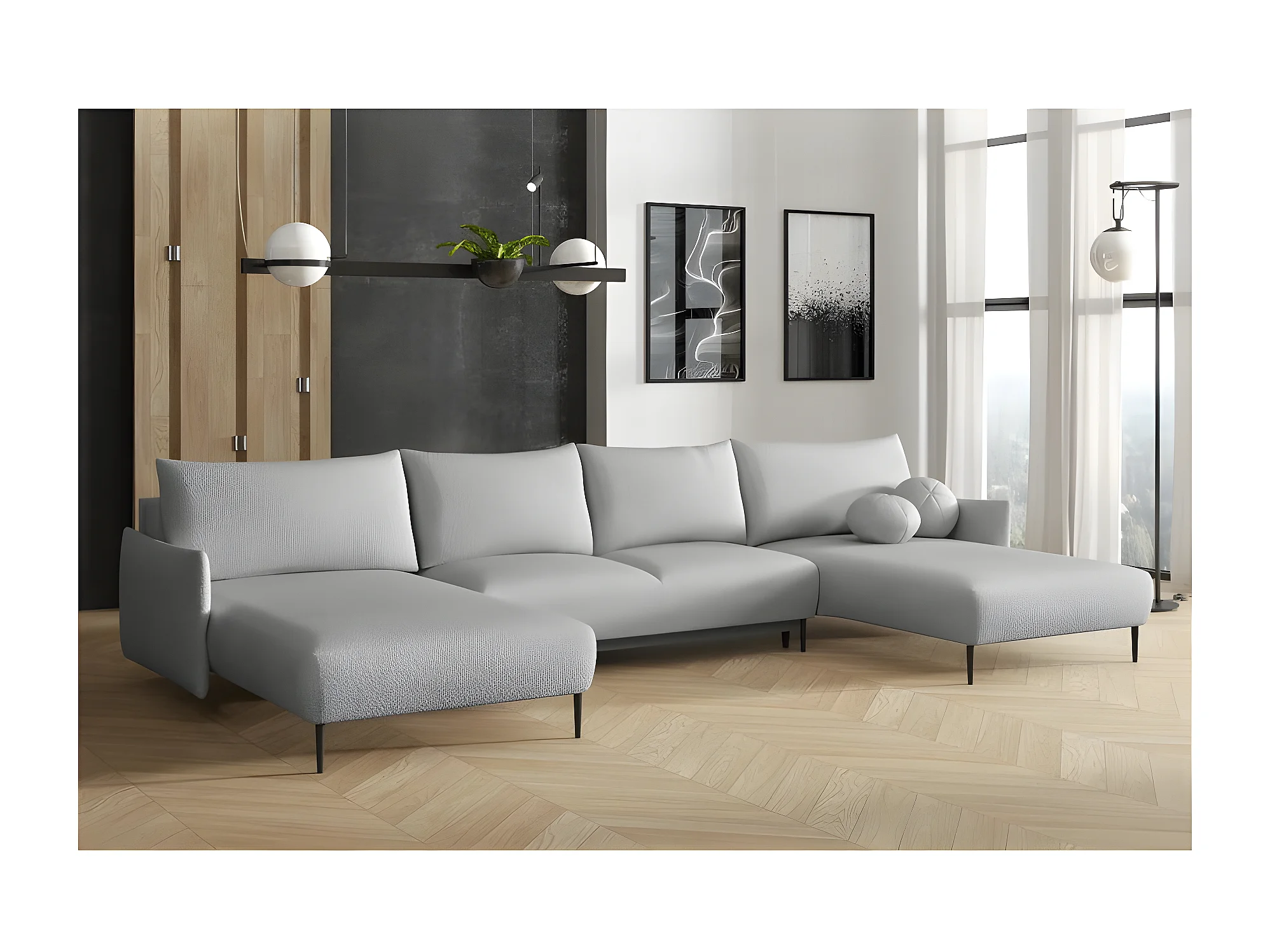 Canapé panoramique LAMBIA en U en tissu bouclette gris clair