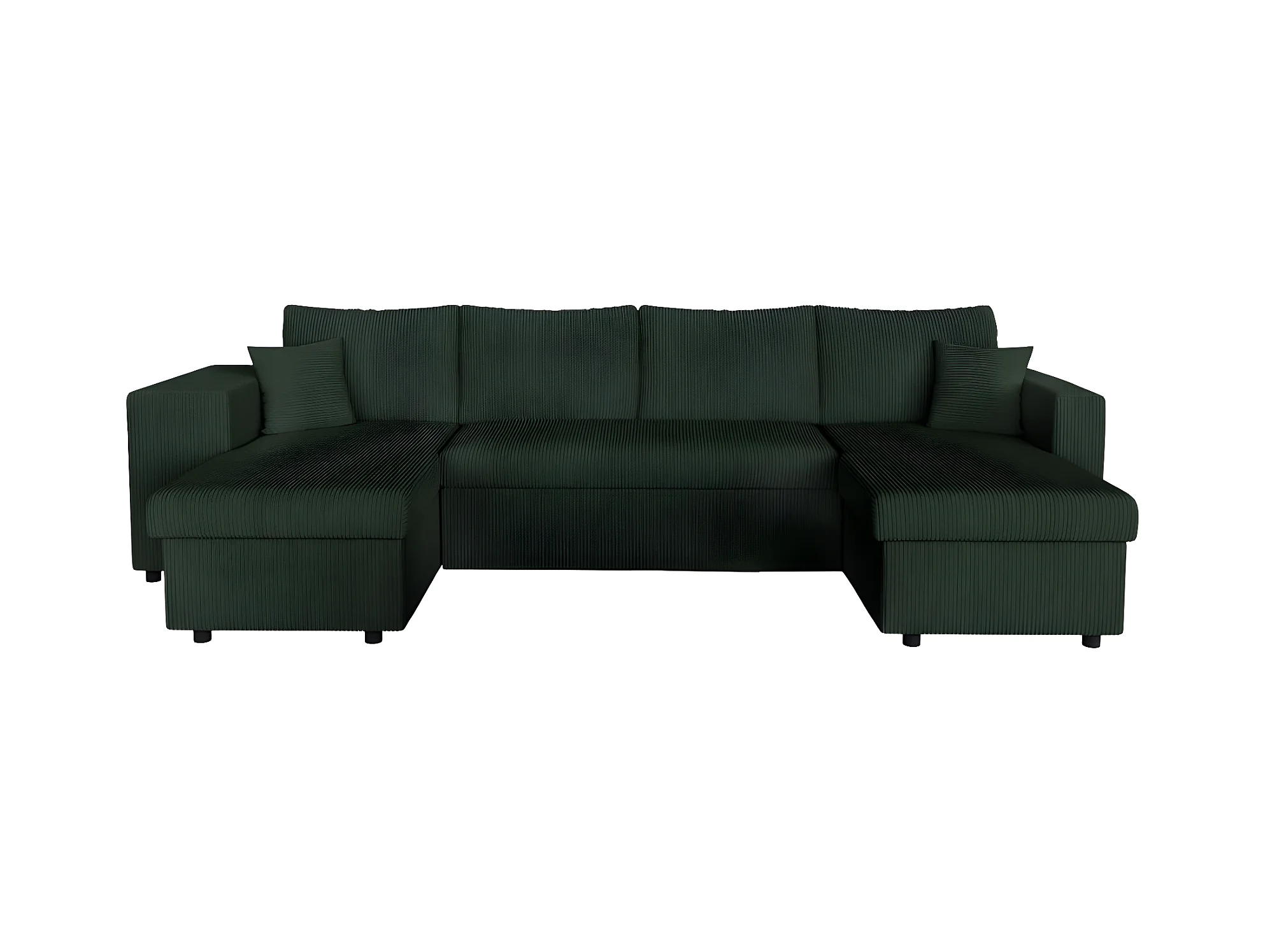 Canapé panoramique Oslo convertible avec 2 coffres, 2 poufs à gauche en velours côtelé vert foncé - L311 x P146 x H81cm - Loungitude