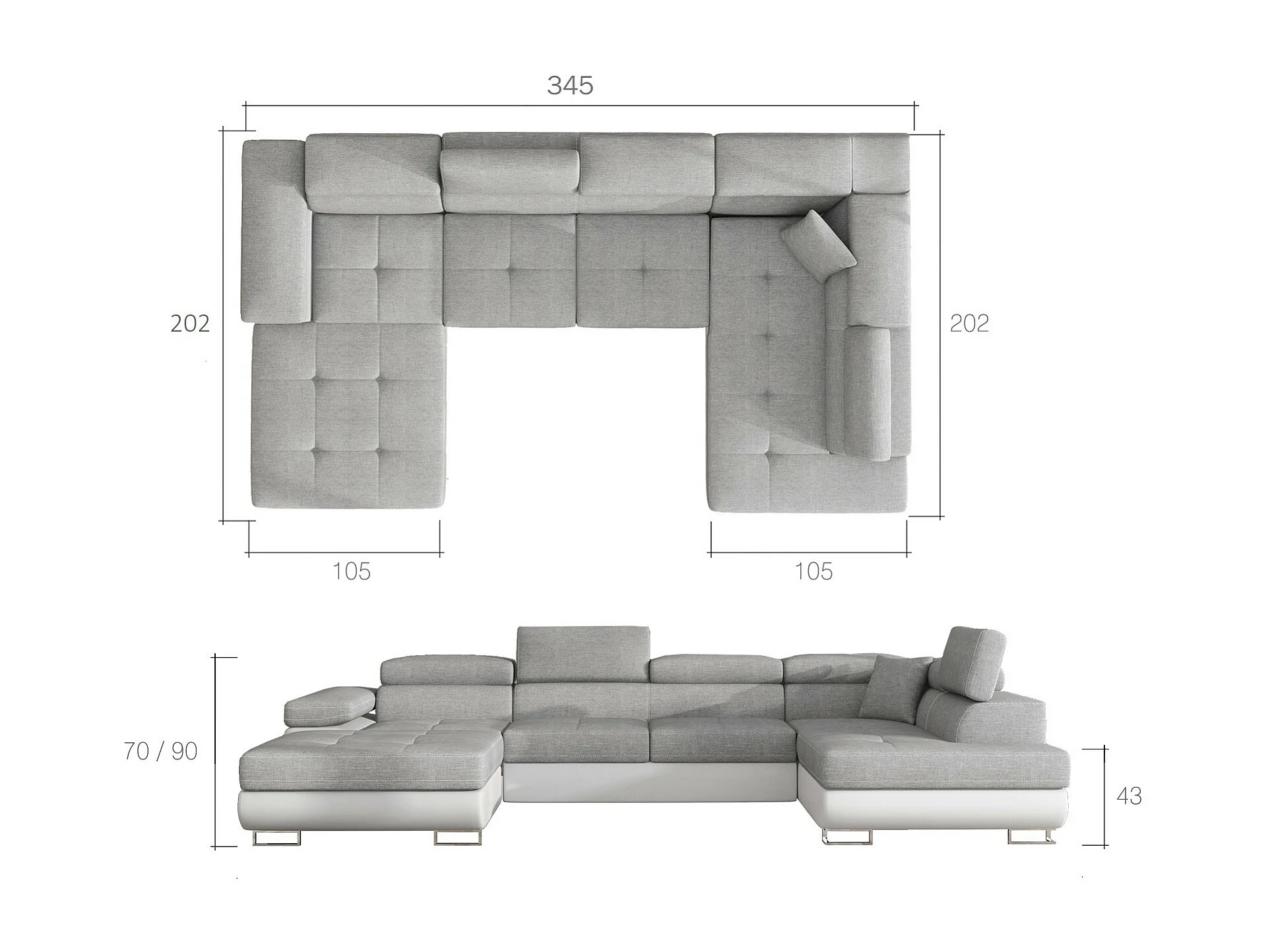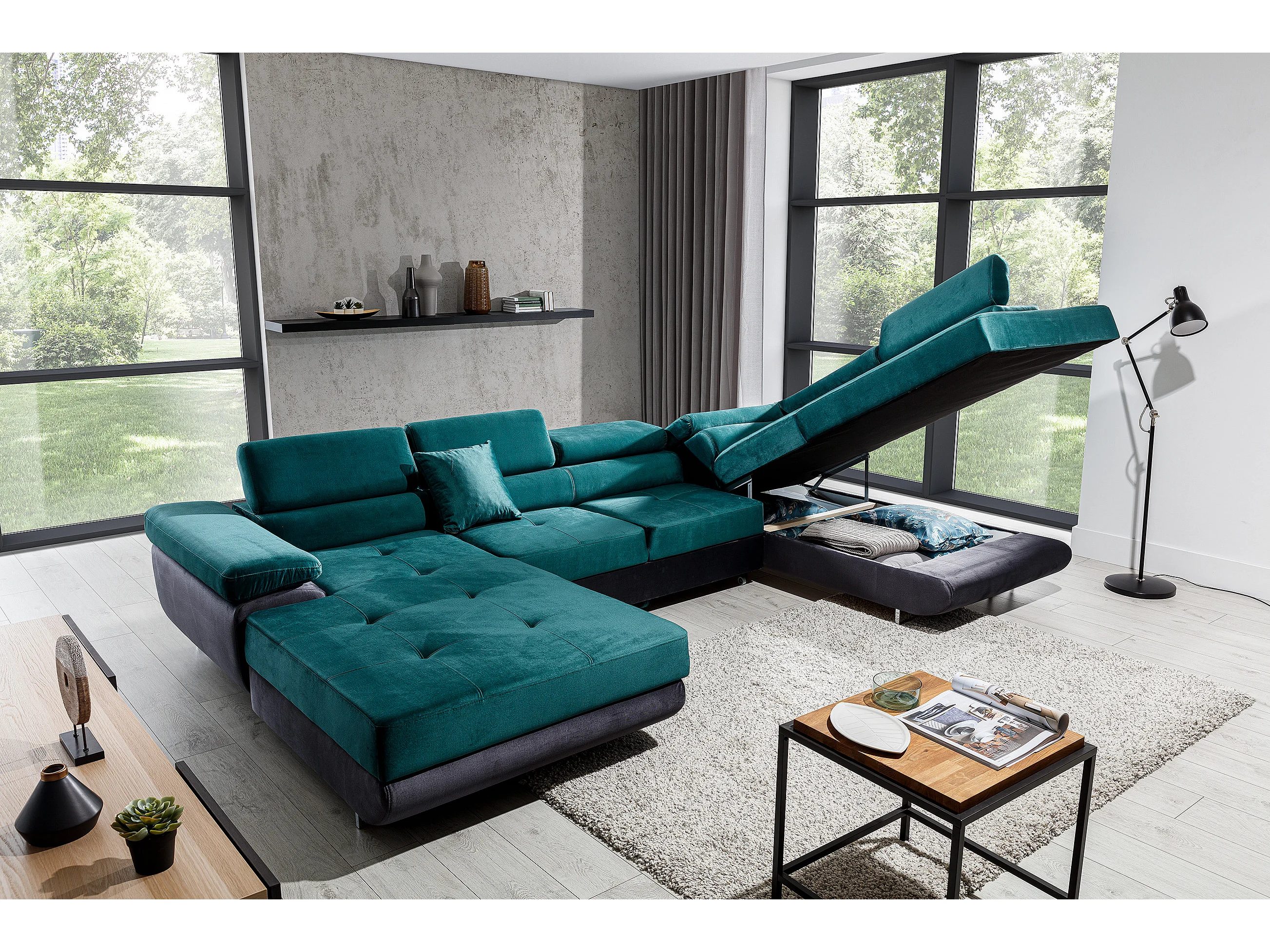 Canapé panoramique velours bordeaux convertible avec coffre de rangement Romano 345cm-Coffre de rangement à droite