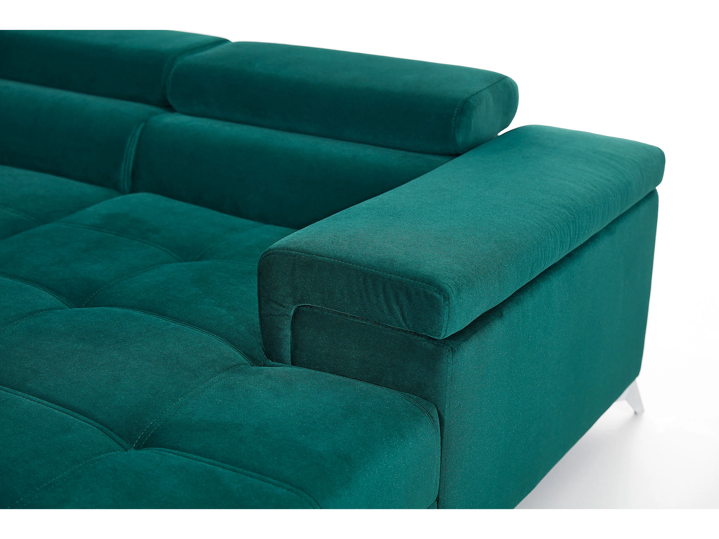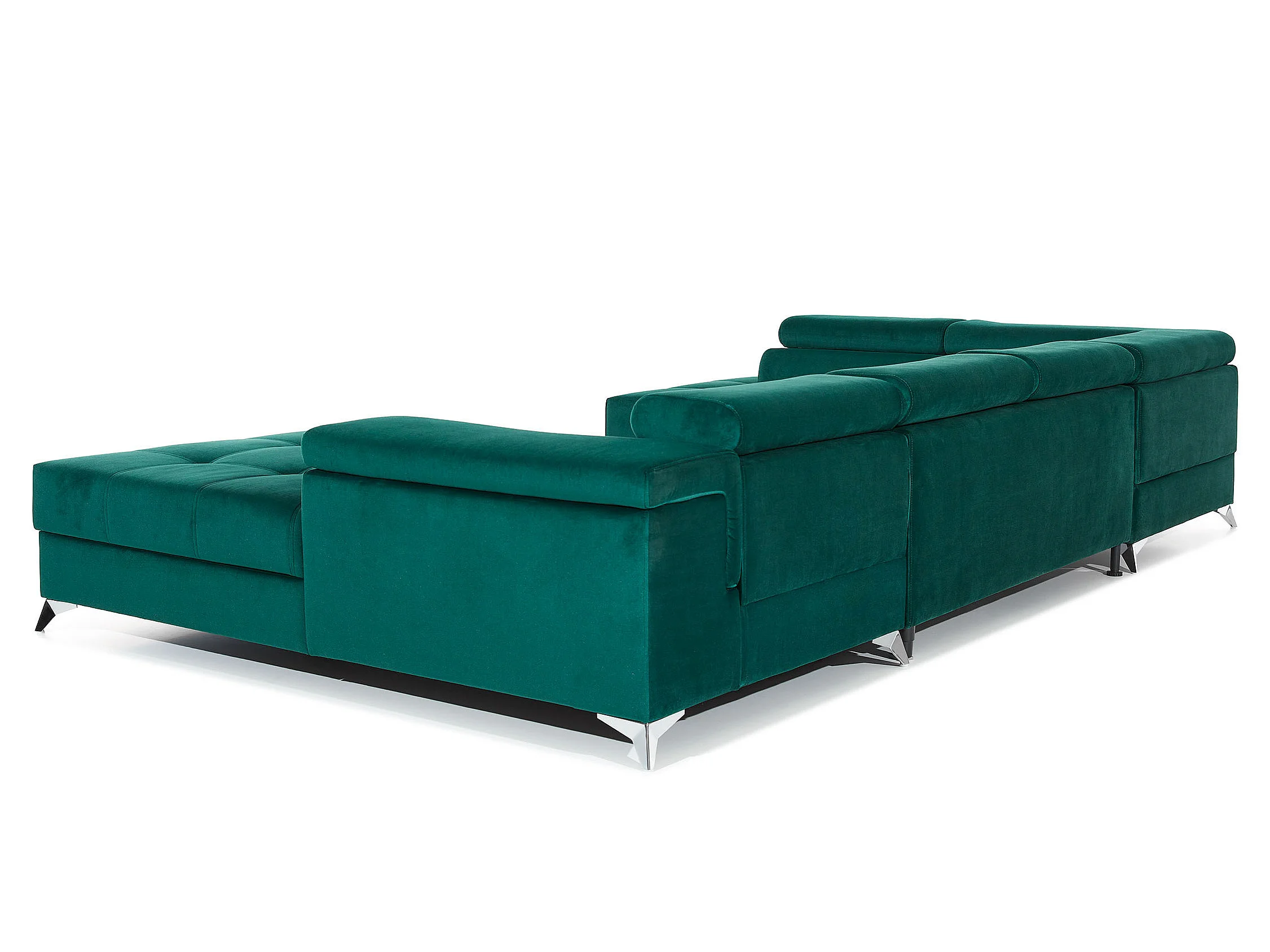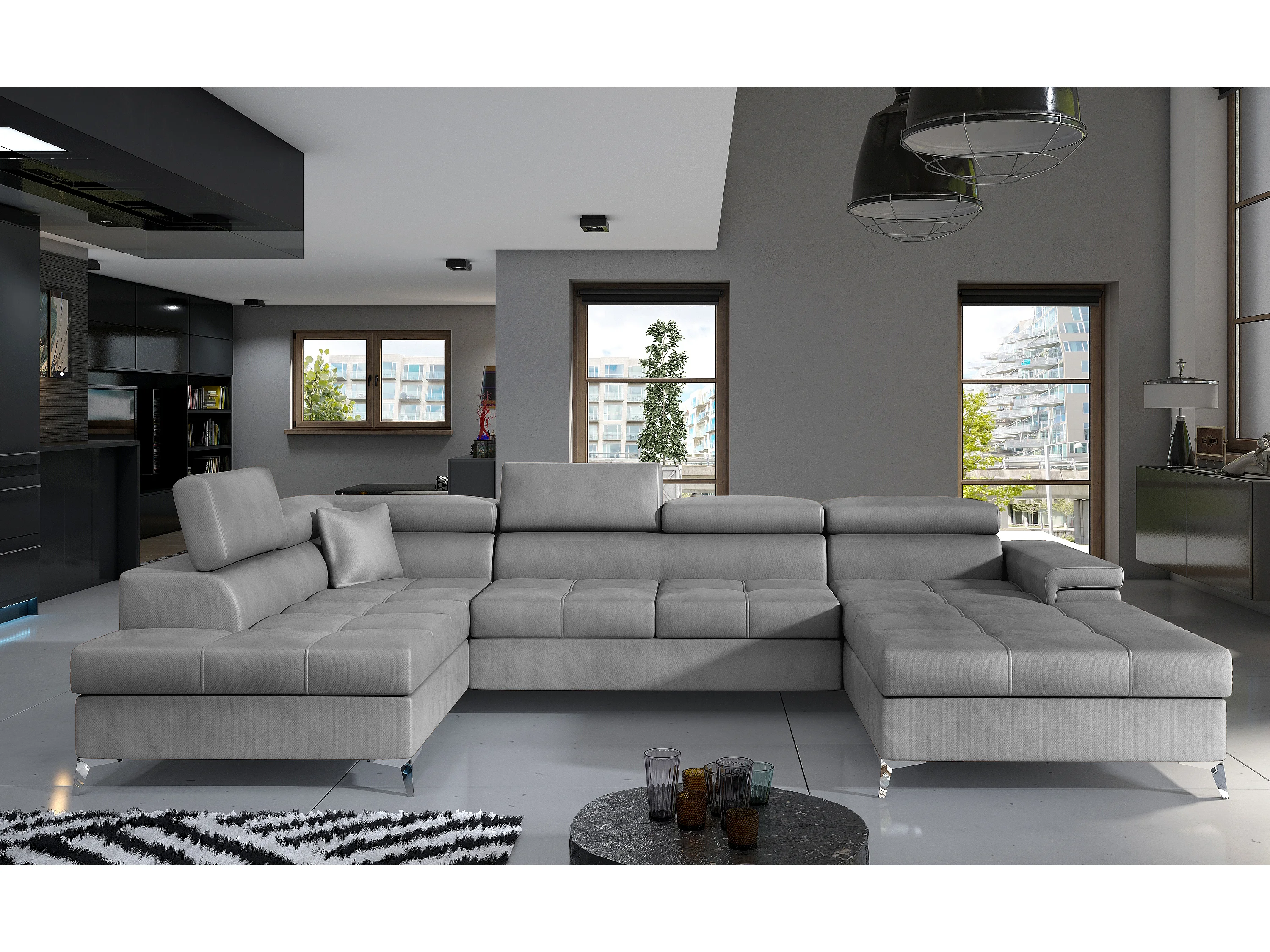 Canapé panoramique velours gris clair coffre de rangement à gauche Kutty 345cm