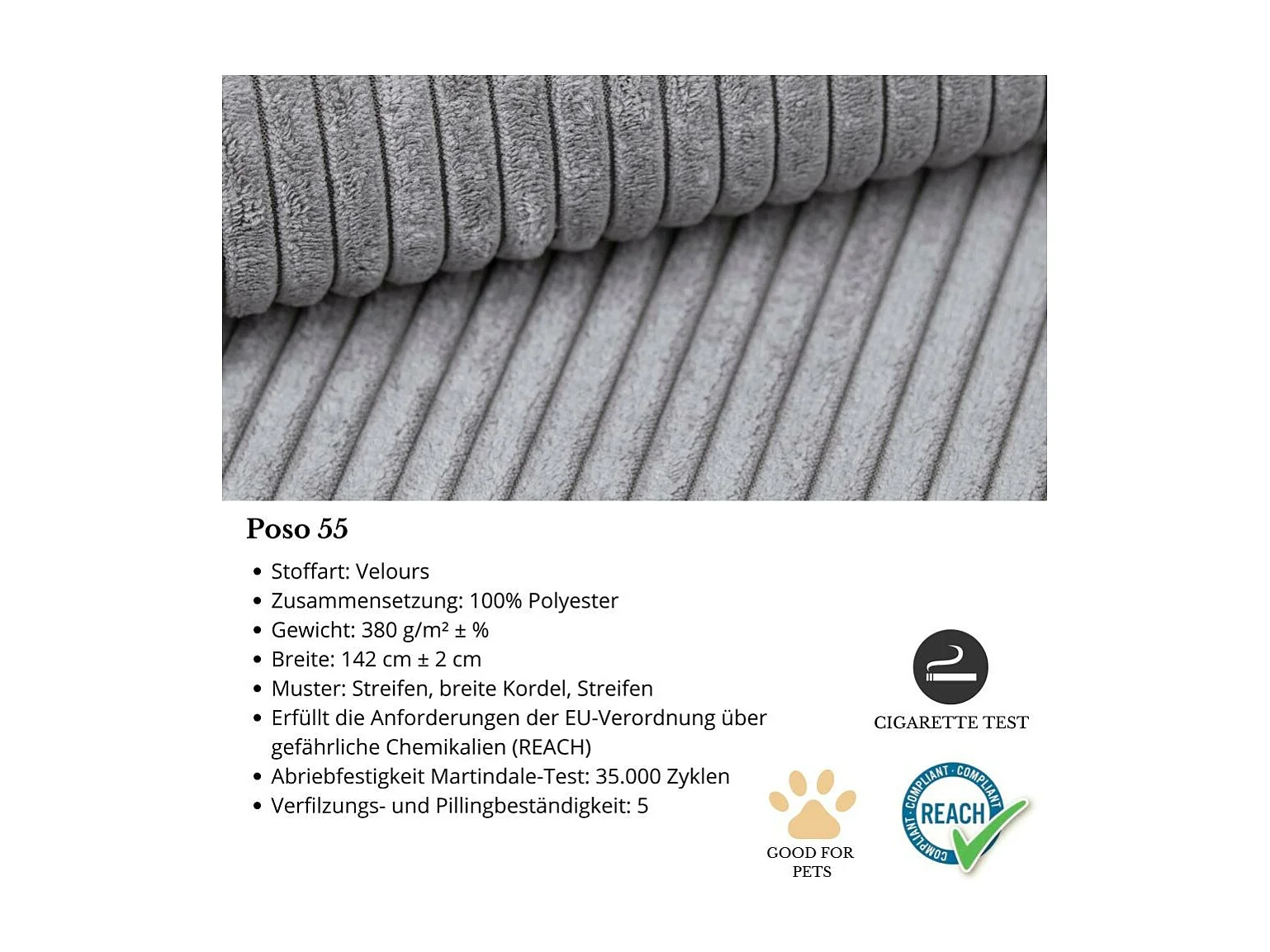 CANAPE Parma sans fonction sommeil gris clair à droite