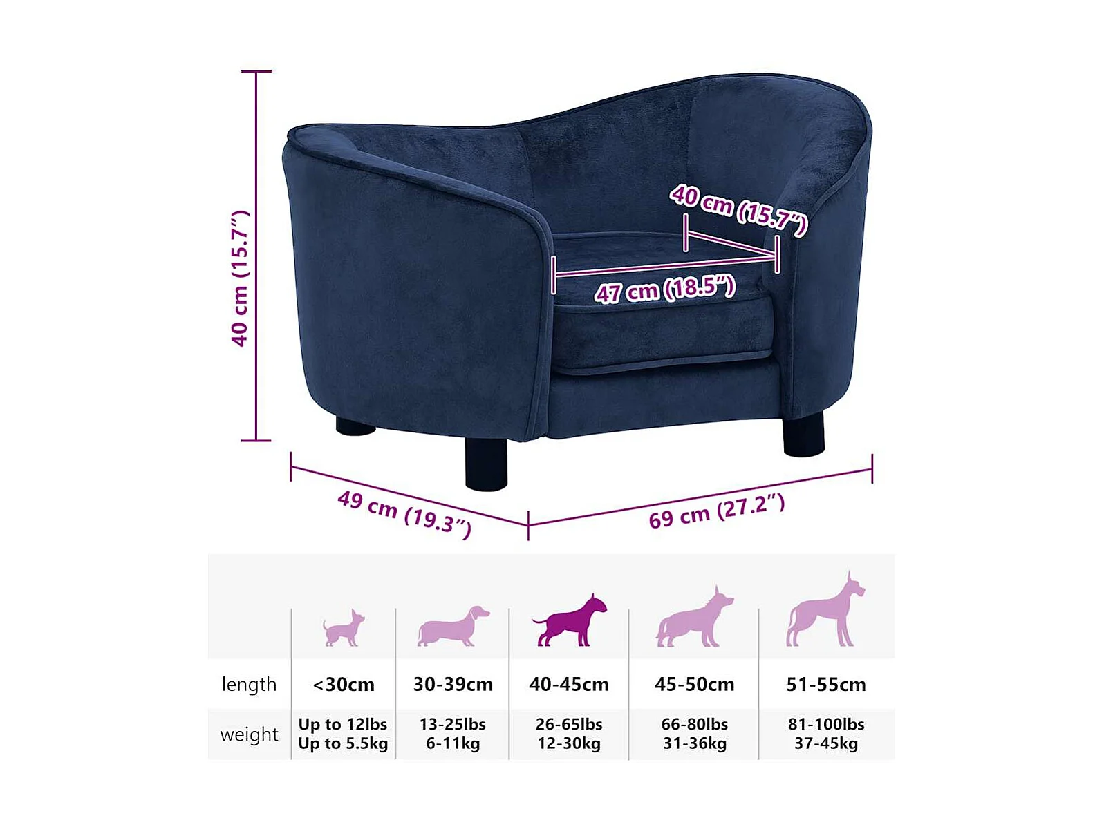 Canapé pour chien Bleu 69x49x40 cm Peluche