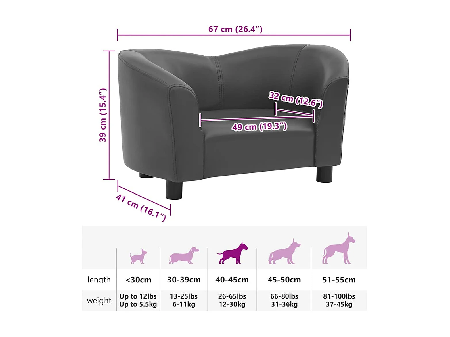 Canapé pour chien Gris 67x41x39 cm Similicuir