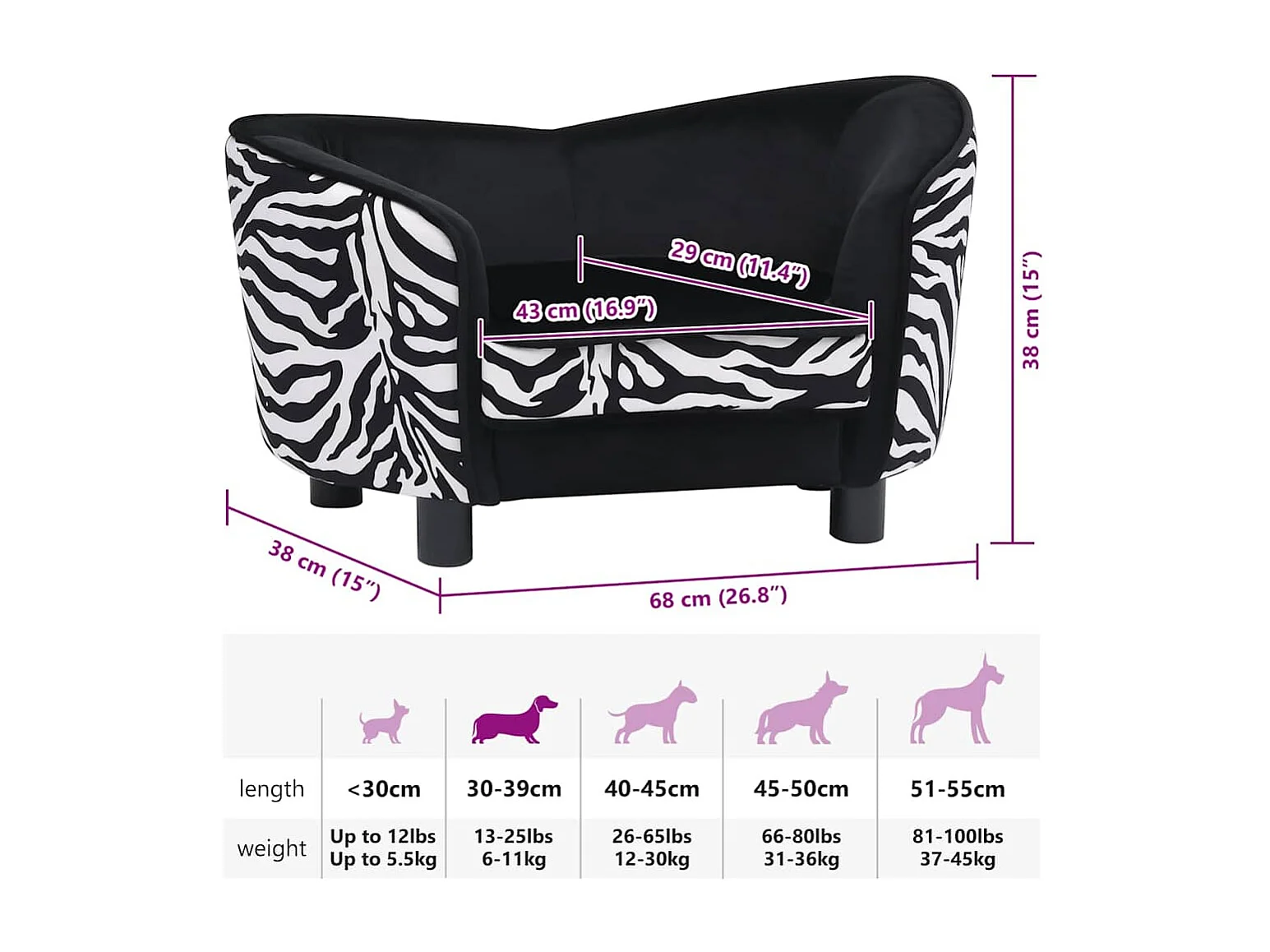 Canapé pour chien Noir 68x38x38 cm Peluche
