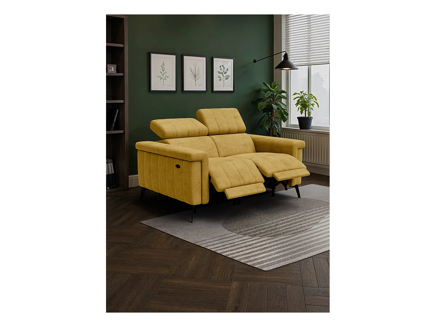 Canapé relax 2 places NORDEL, tissu moutarde