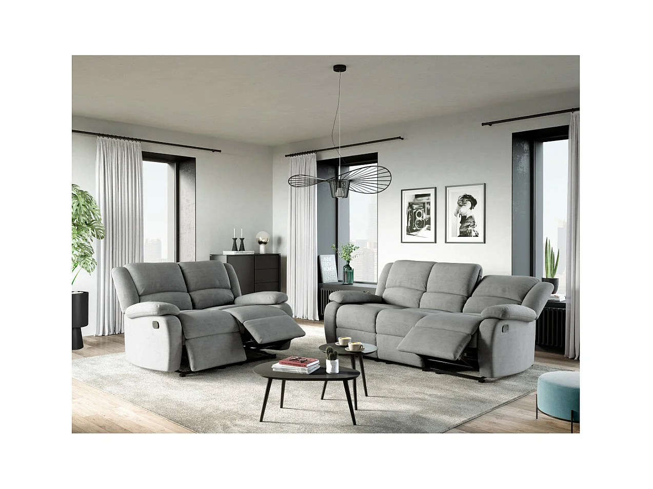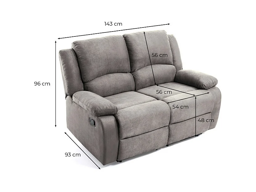 Canapé Relaxation 2 places en microfibre Léo - Gris - L143 x 93 x 96cm - Loungitude