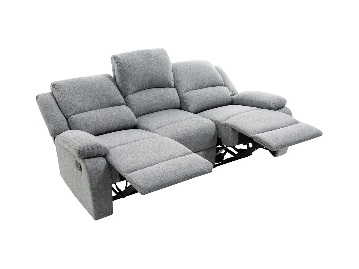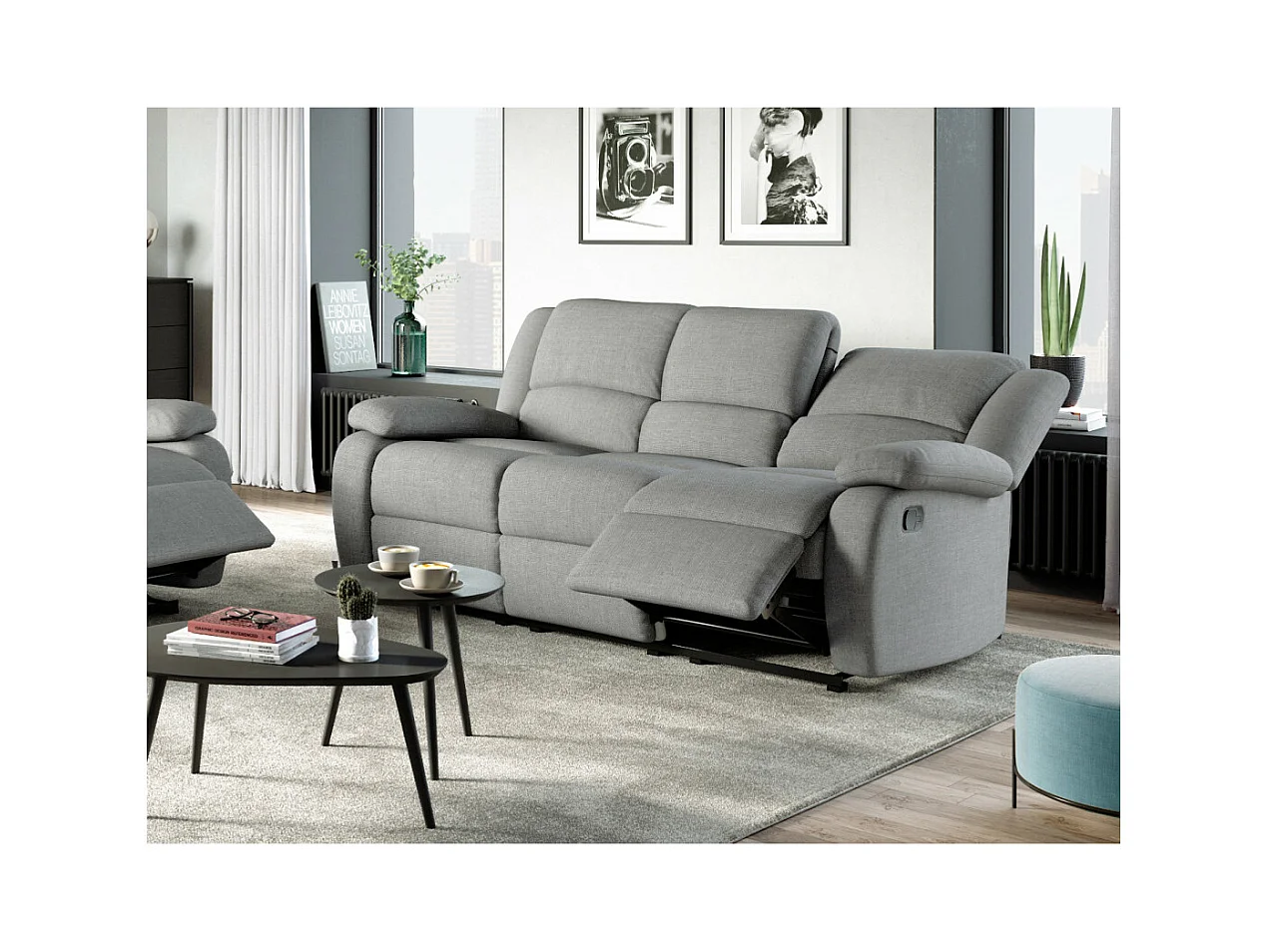Canapé Relaxation 3 places Léo en Tissu - Gris clair - L193 x 93 x 96cm - Loungitude