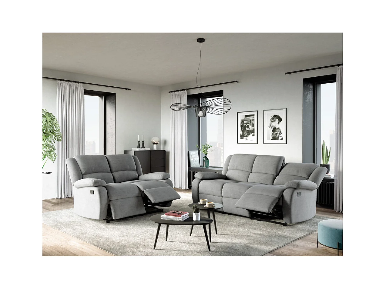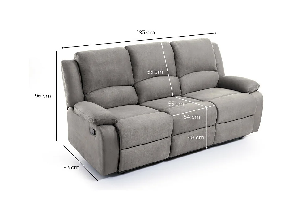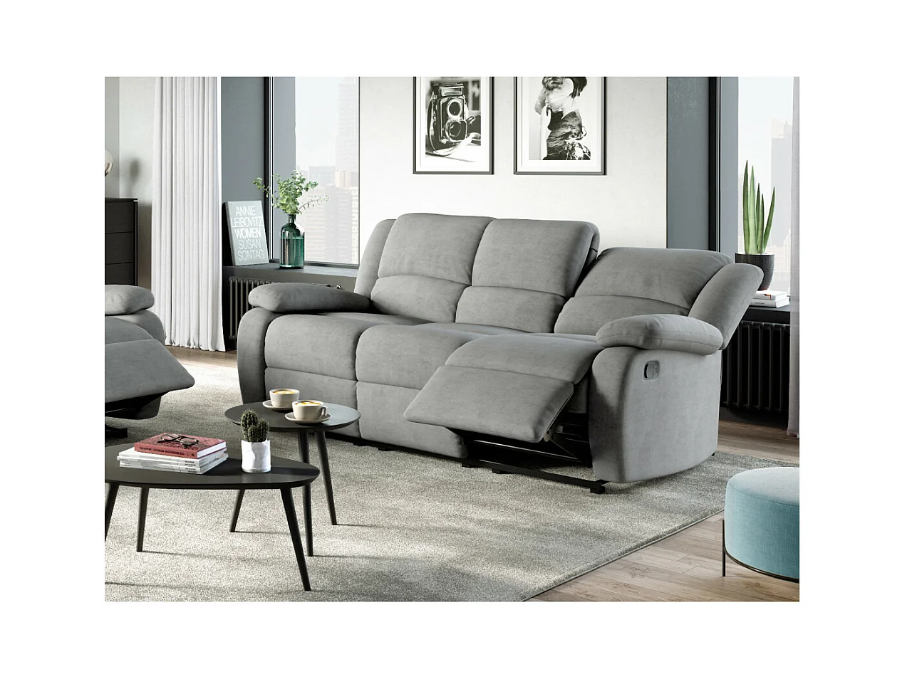 Canapé Relaxation 3 places Microfibre Léo - Gris - L193 x 93 x 96cm - Loungitude