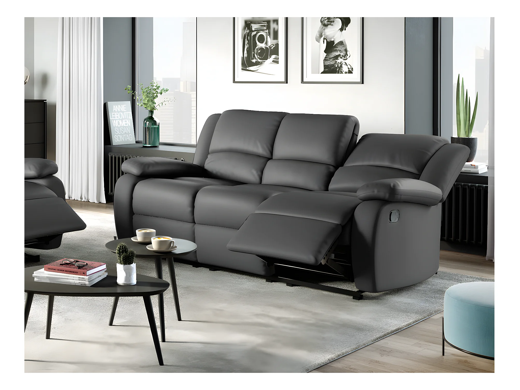 Canapé Relaxation 3 places Simili cuir Léo - Gris - L193 x 93 x 96cm - Loungitude