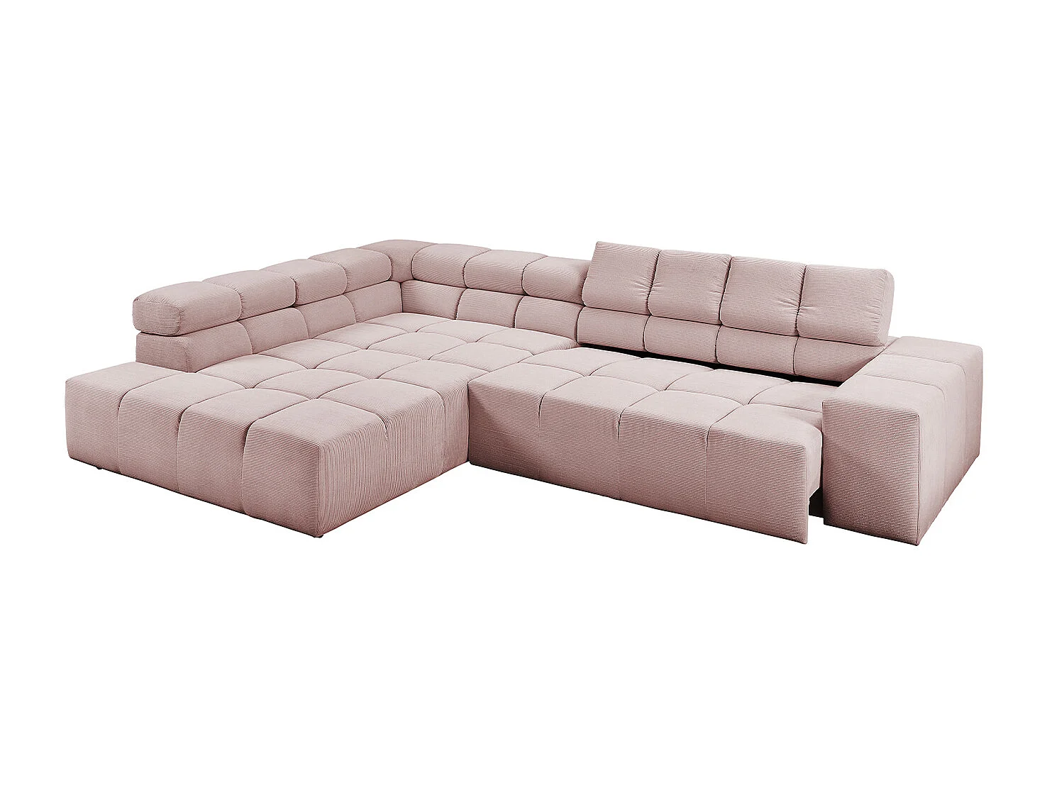 Canapé d'angle - Rose Velours côtelé - DELIA