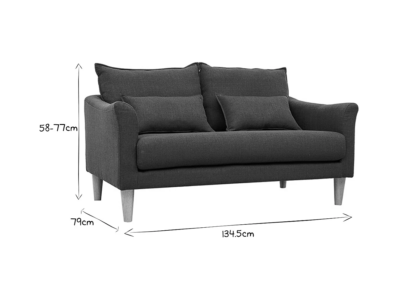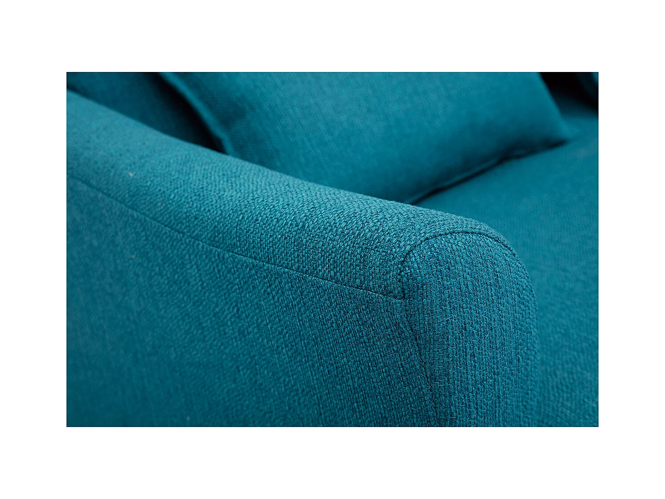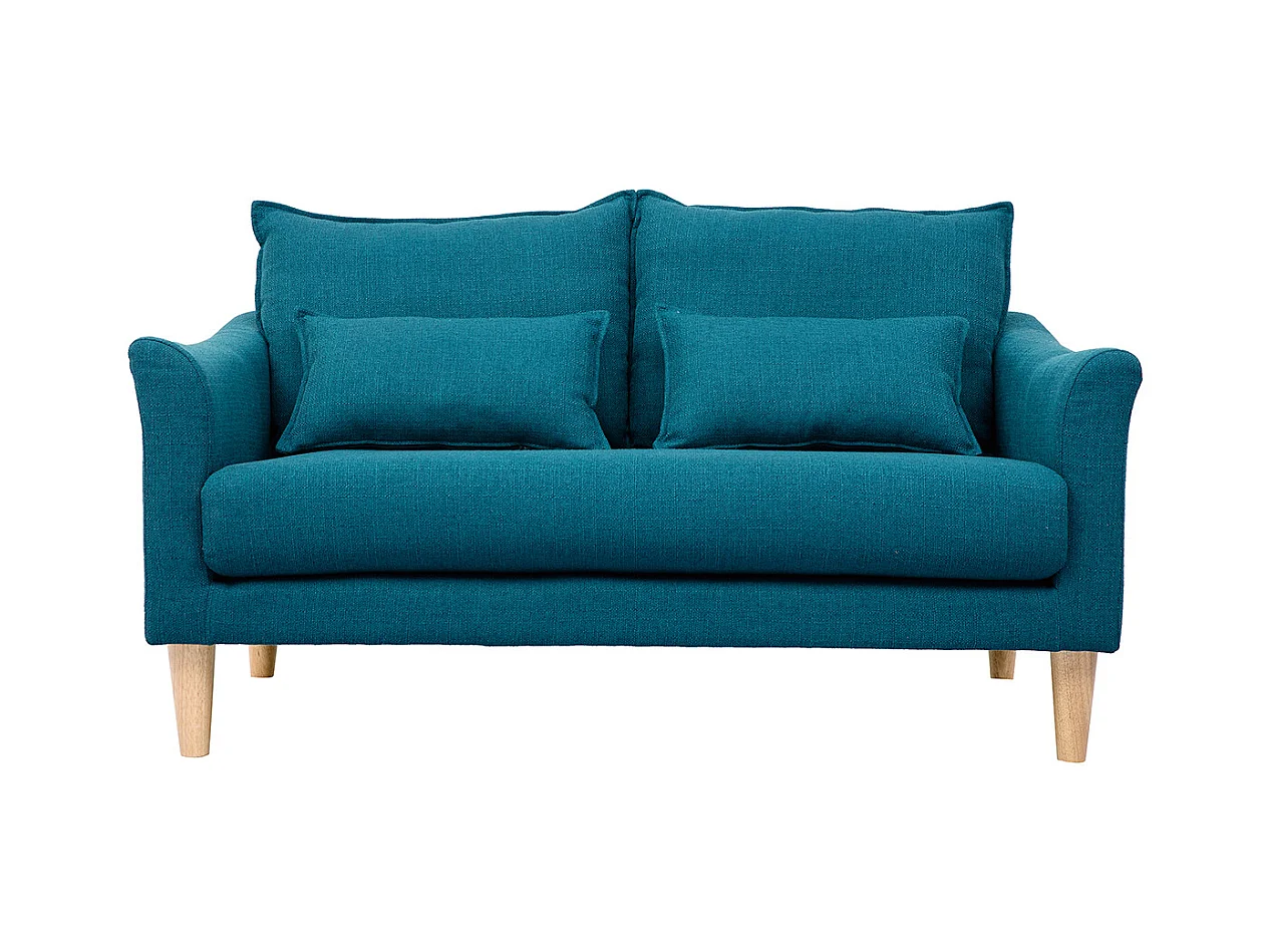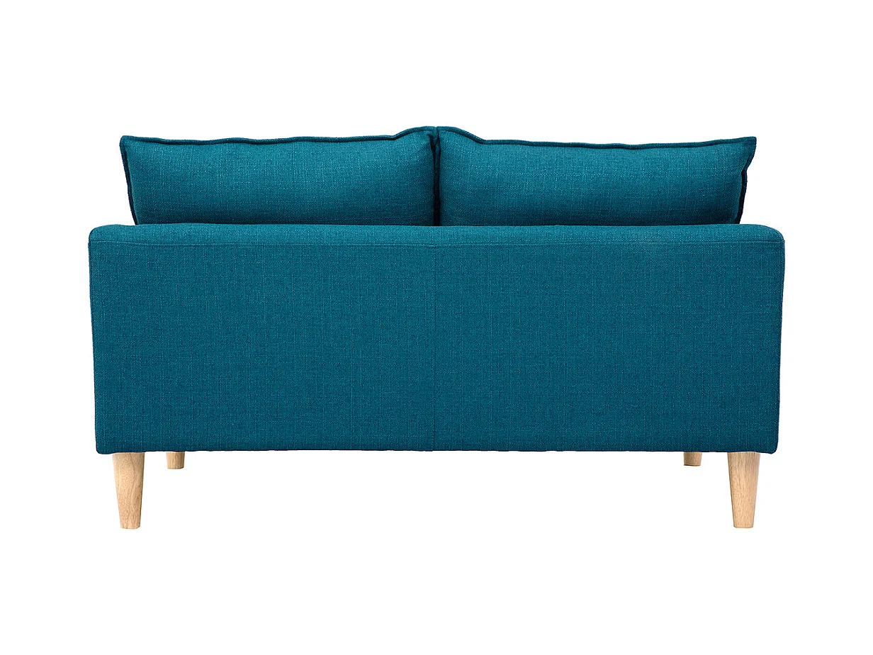 Canapé scandinave 2 places en tissu bleu canard et bois clair KATE