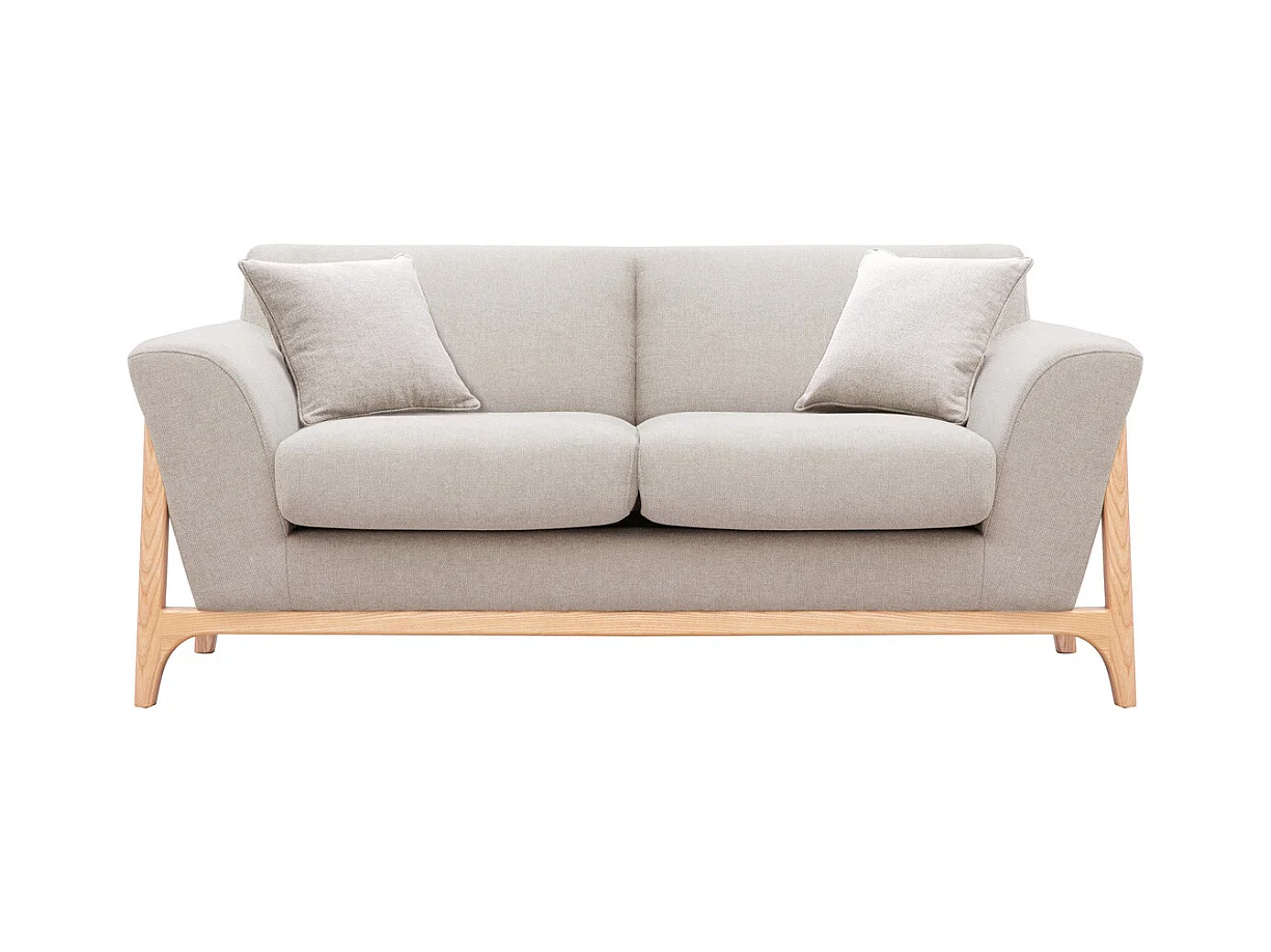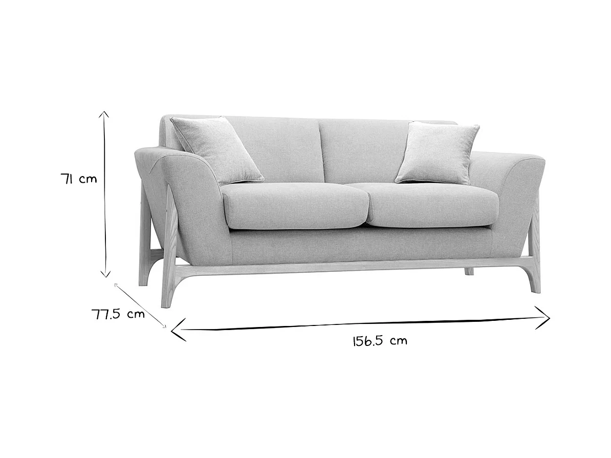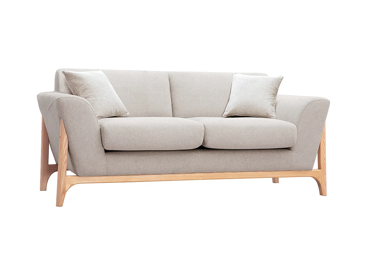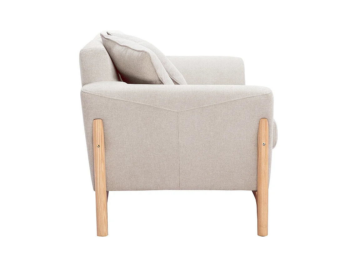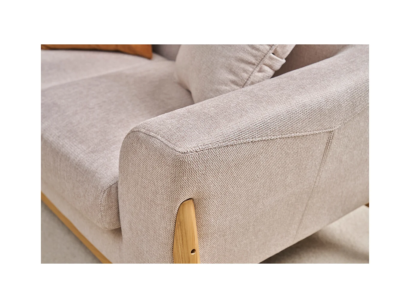 Canapé scandinave 2 places en tissu effet velours texturé beige et bois clair ASAKO