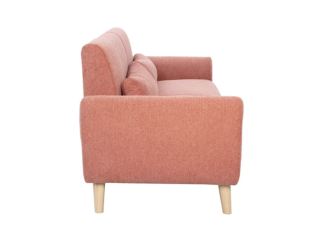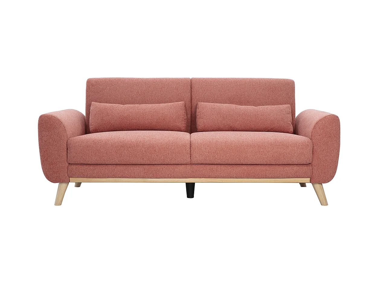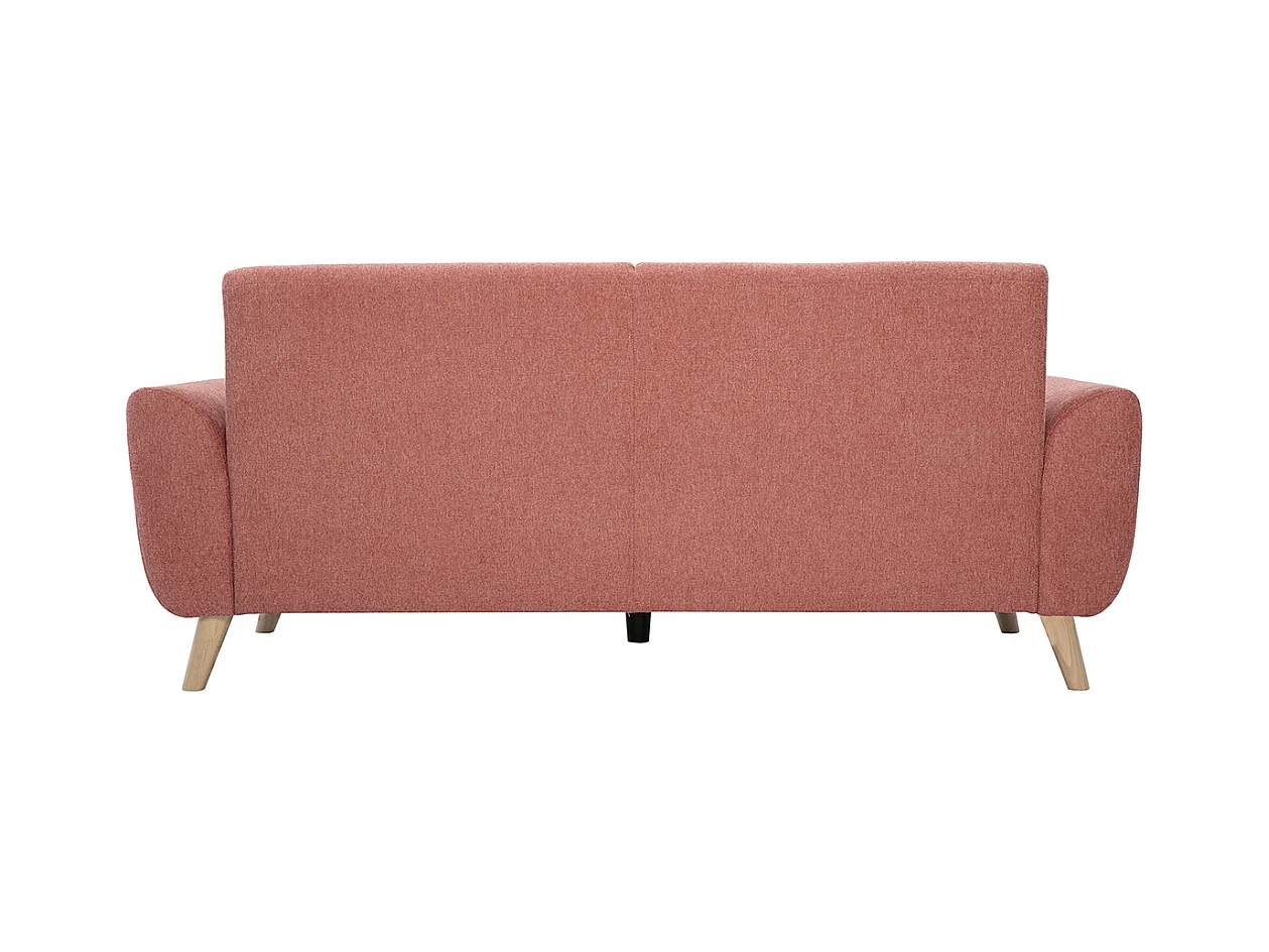 Canapé scandinave 3 places en tissu effet velours texturé terracotta et bois clair EKTOR