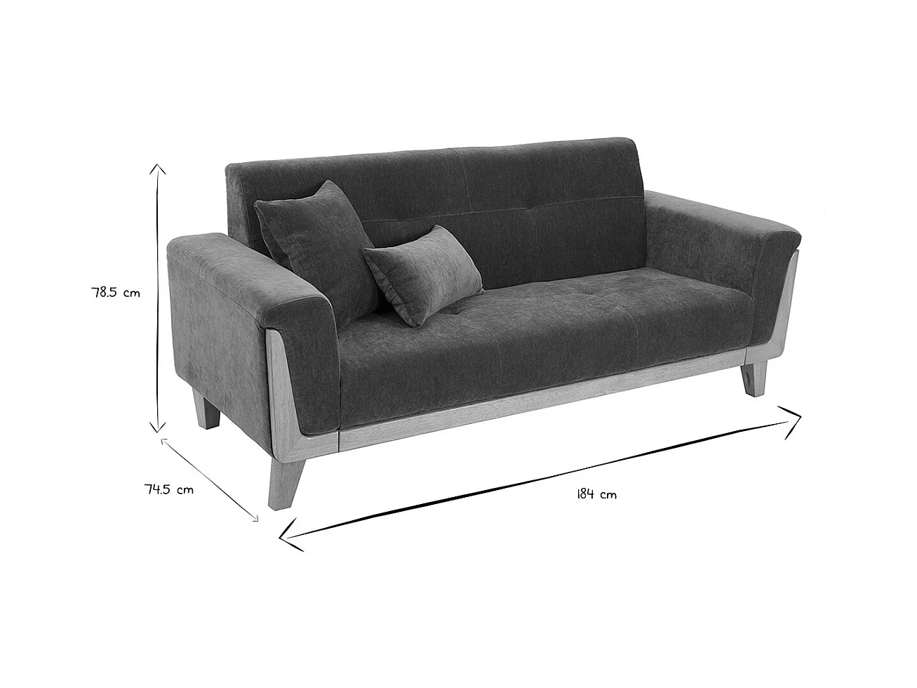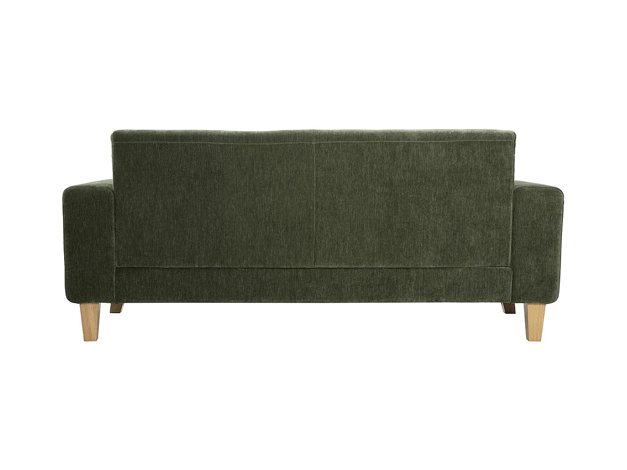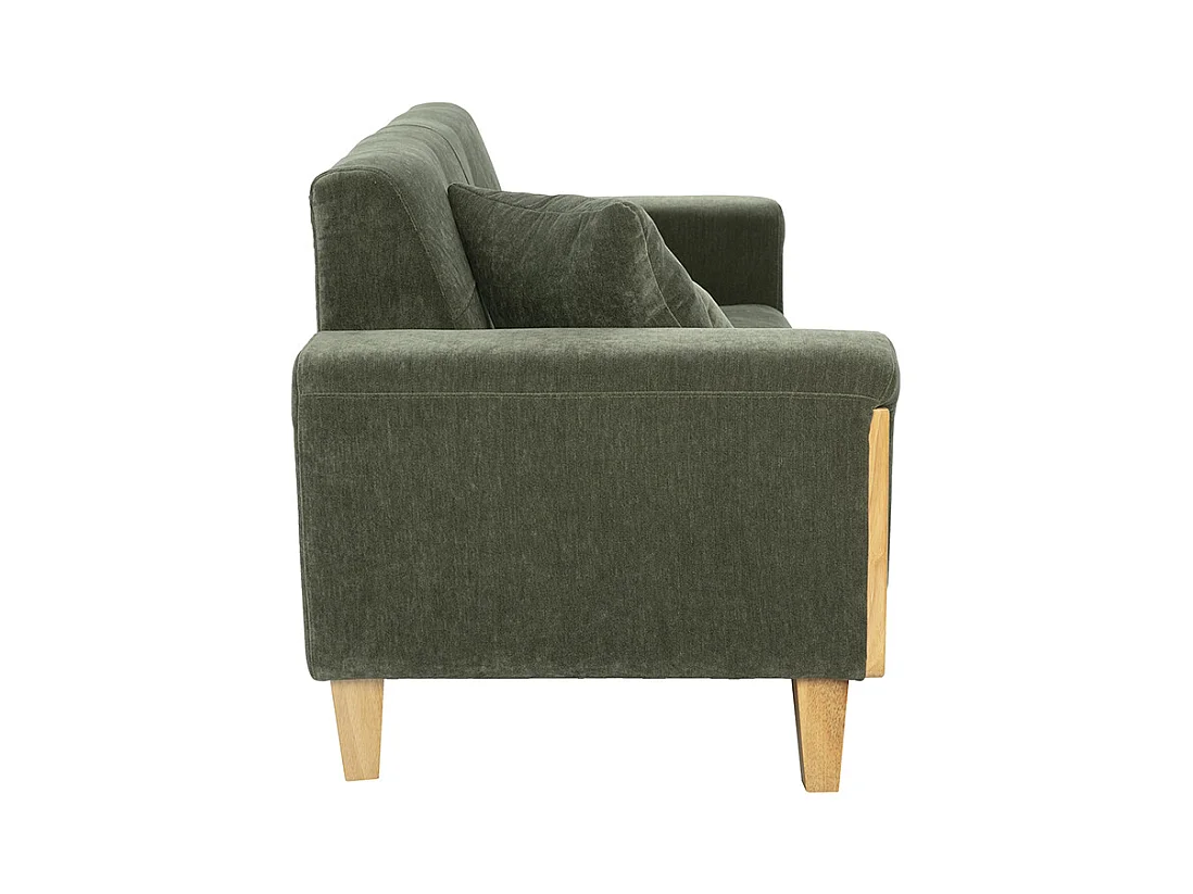 Canapé scandinave 3 places en tissu effet velours vert kaki et bois clair FJORD