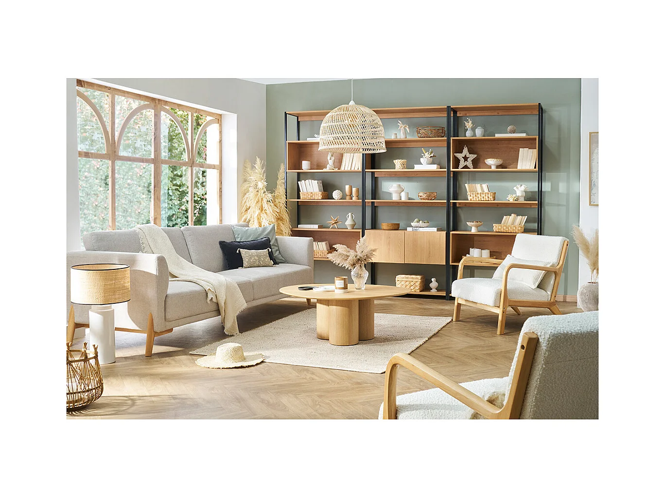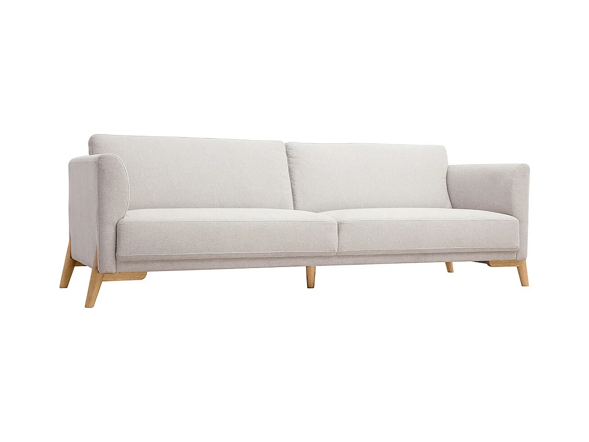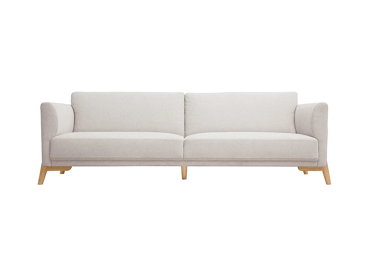 Canapé scandinave 4 places en tissu effet velours texturé beige et bois clair SINDRO