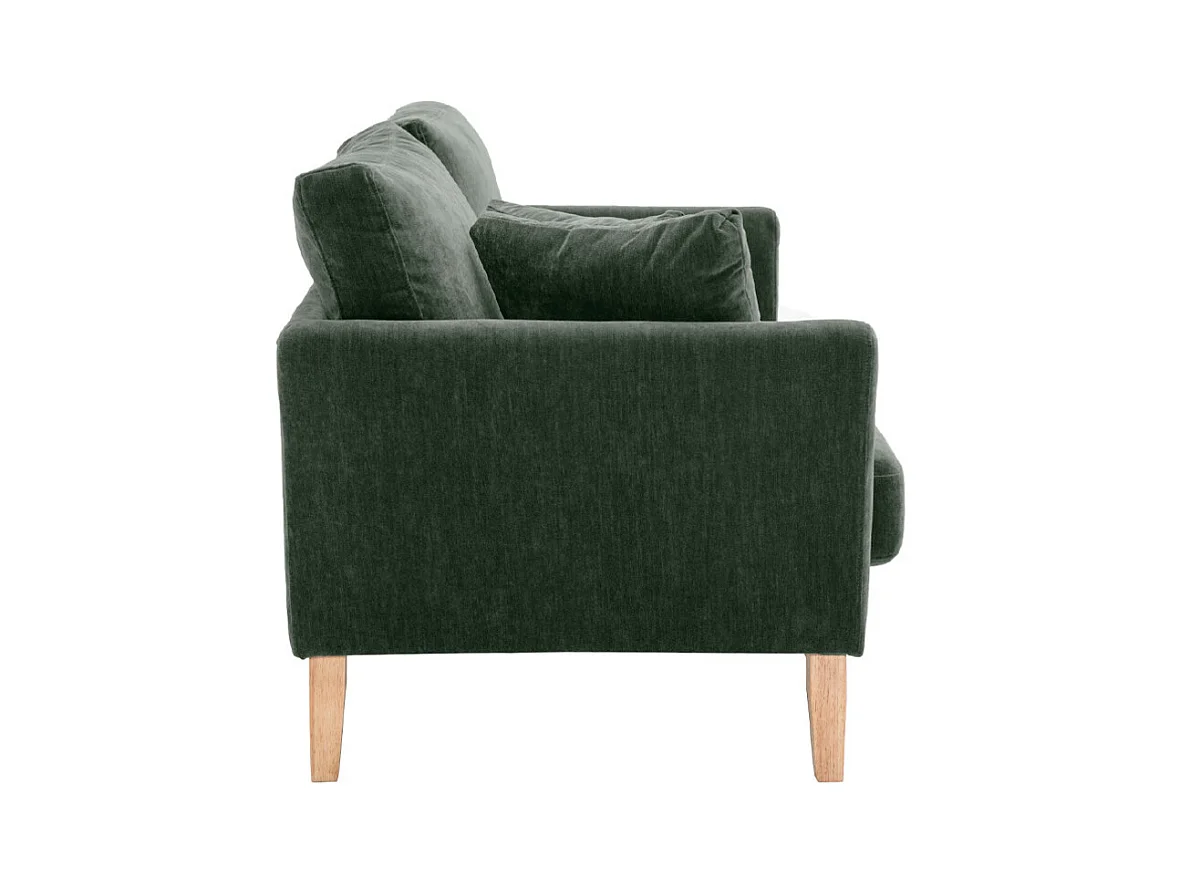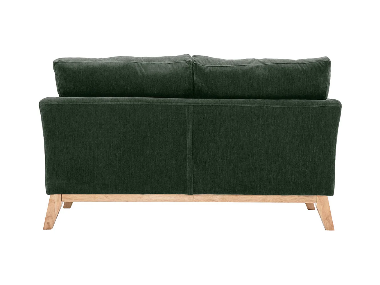 Canapé scandinave déhoussable 2 places en tissu effet velours vert kaki et bois clair OSLO