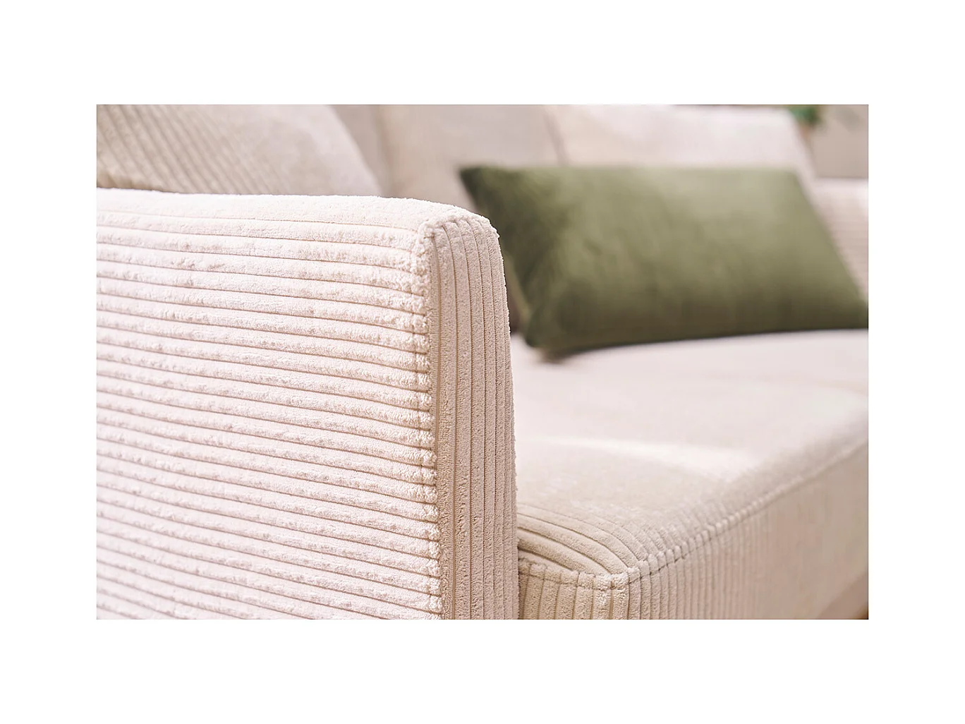 Canapé scandinave déhoussable 2 places en tissu velours côtelé beige et bois clair OSLO