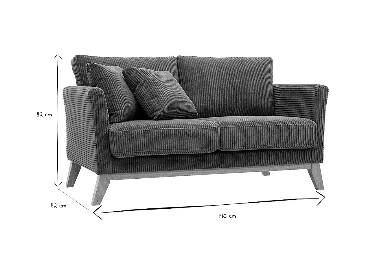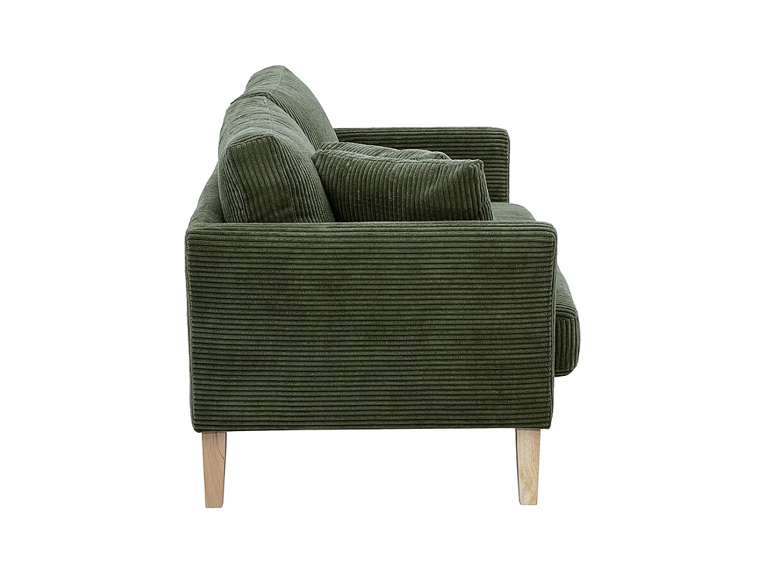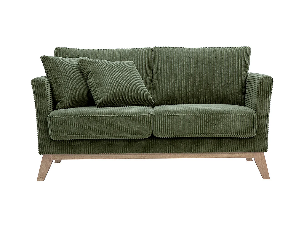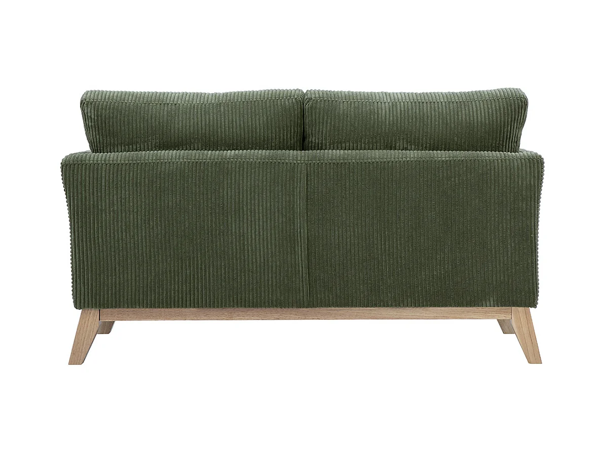 Canapé scandinave déhoussable 2 places en tissu velours côtelé vert kaki et bois clair OSLO