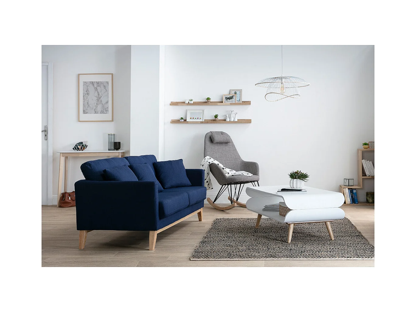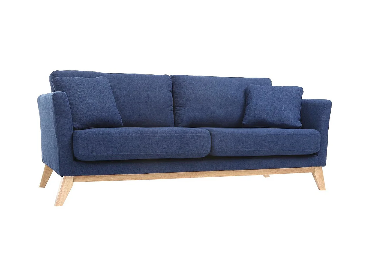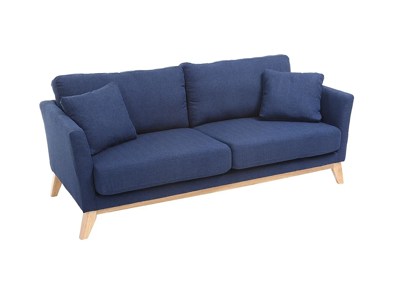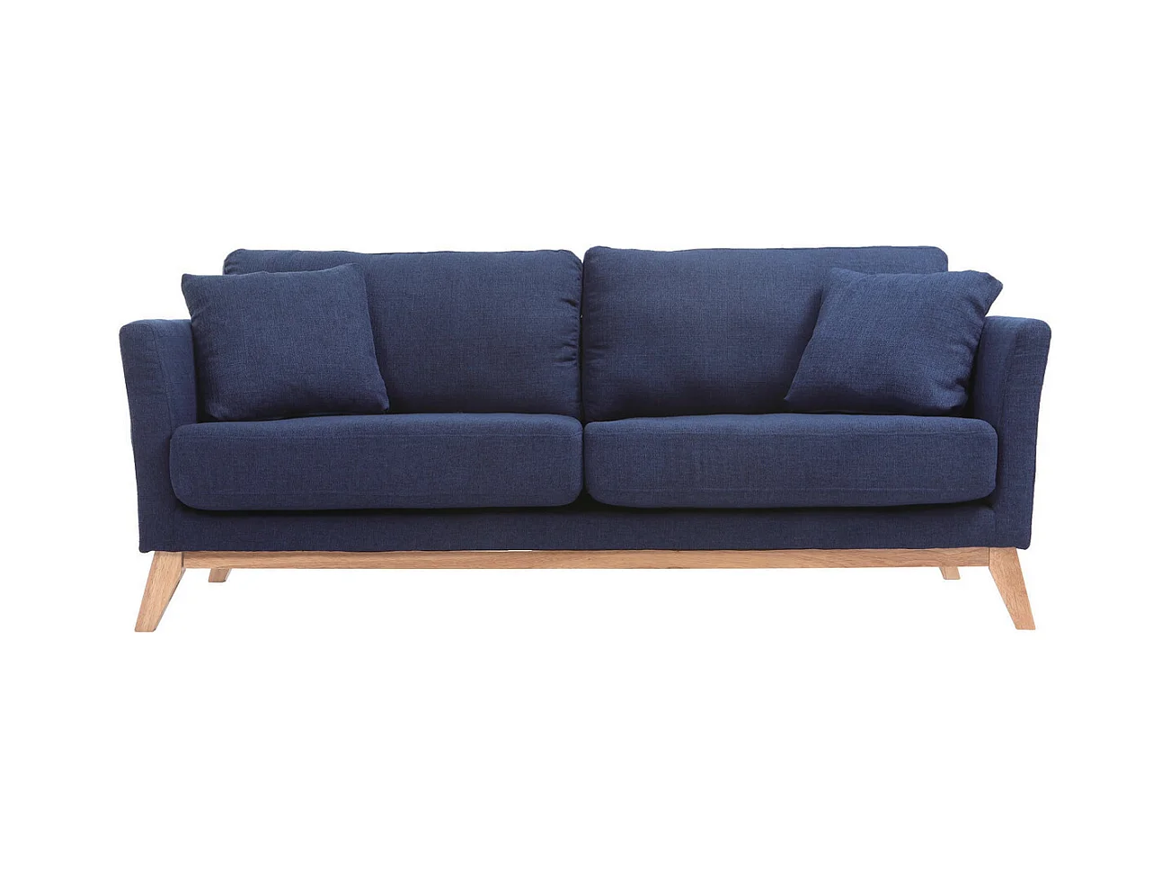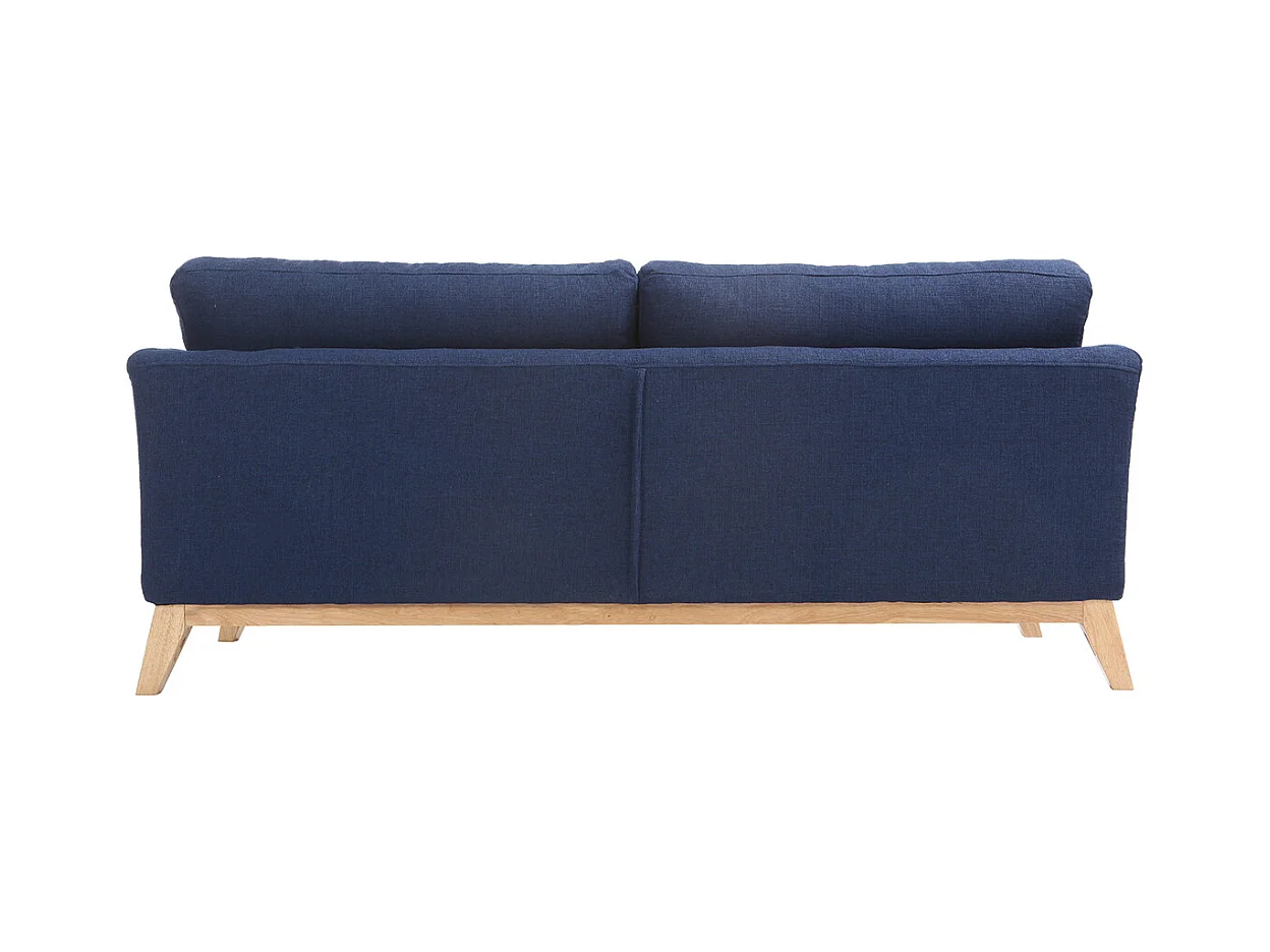 Canapé scandinave déhoussable 3 places en tissu bleu foncé et bois clair OSLO