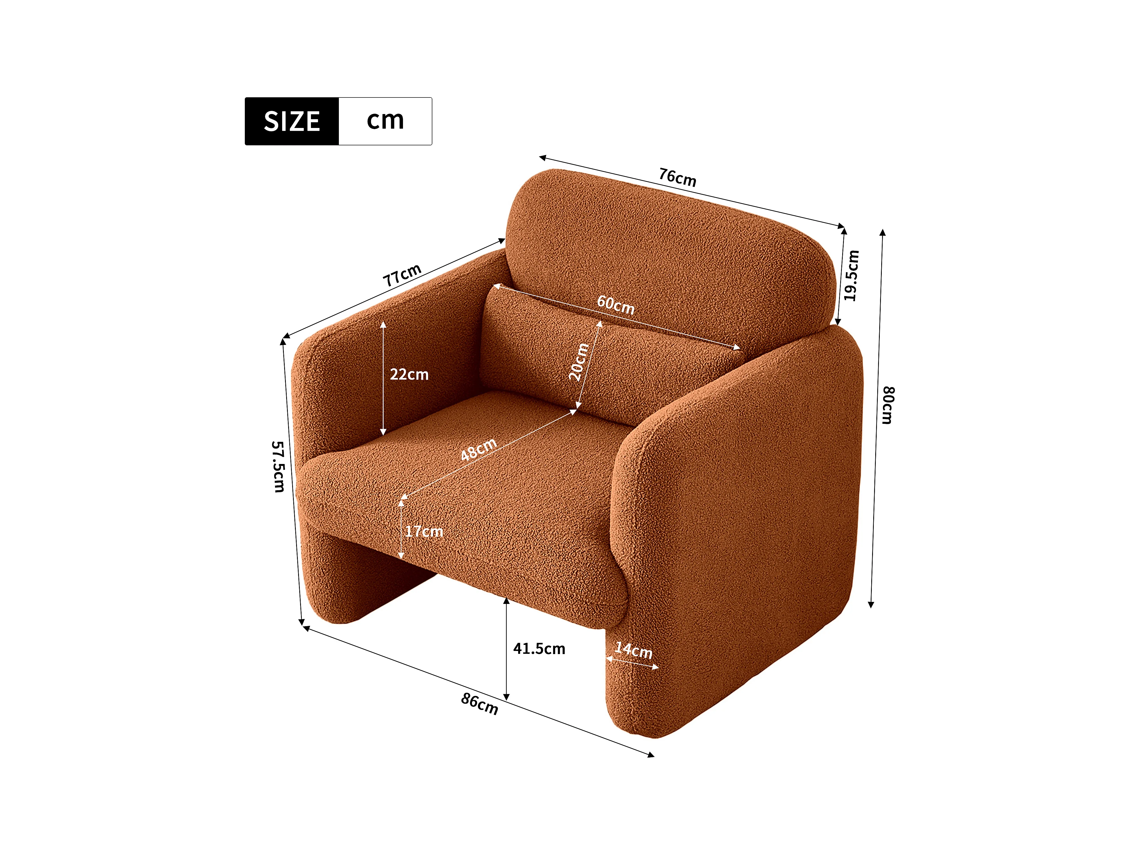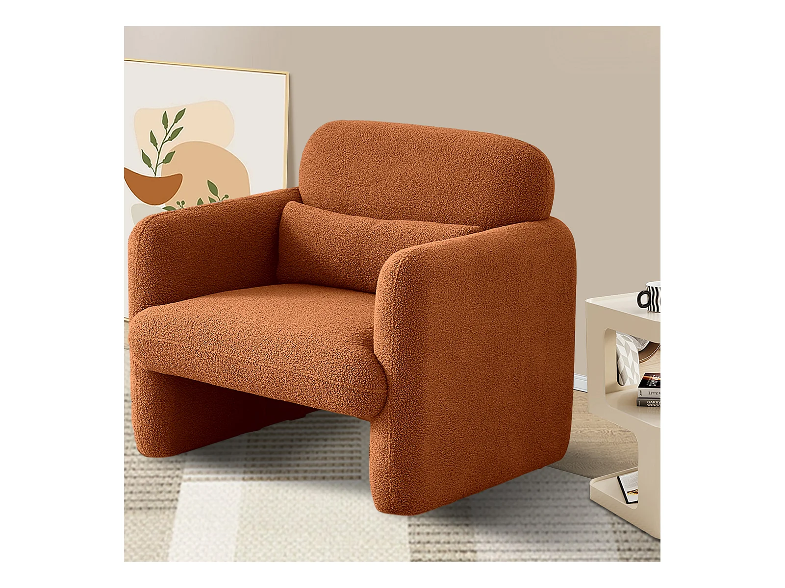 Canapé simple, moderne, en peluche, fauteuil rembourré avec coussin de taille, fauteuil de lecture confortable, pour salon et chambre à coucher, velours teddy (oran