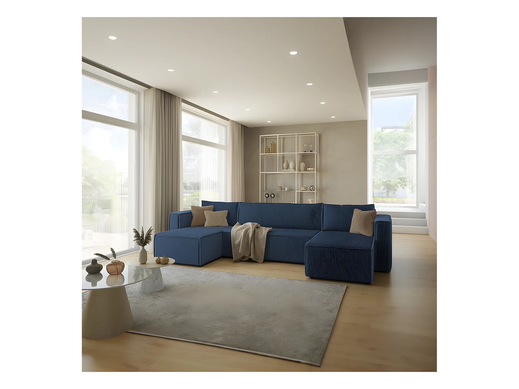 Canapé U 5 places convertible coffre Ezekiel velours côtelé Bleu