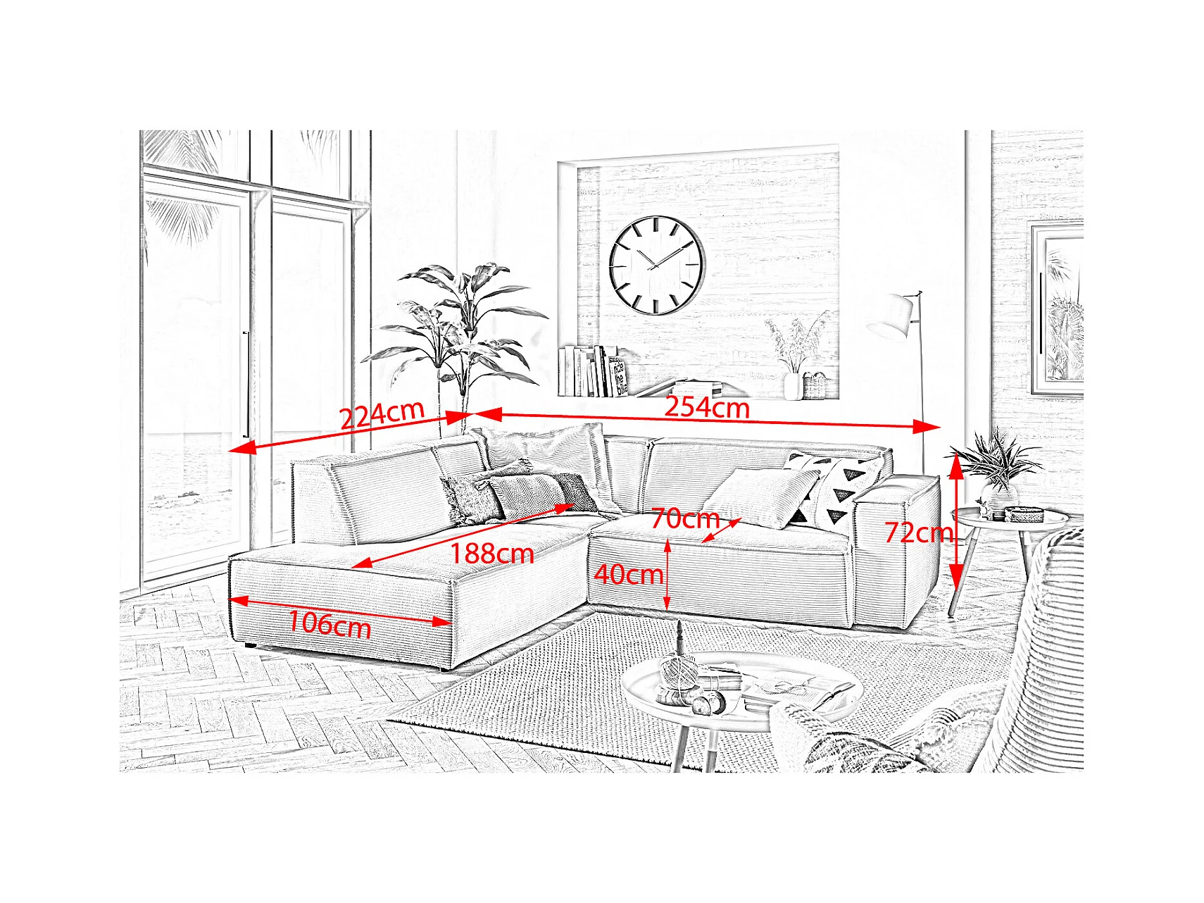 Canapé - vert émeraude Velours côtelé - SAMU