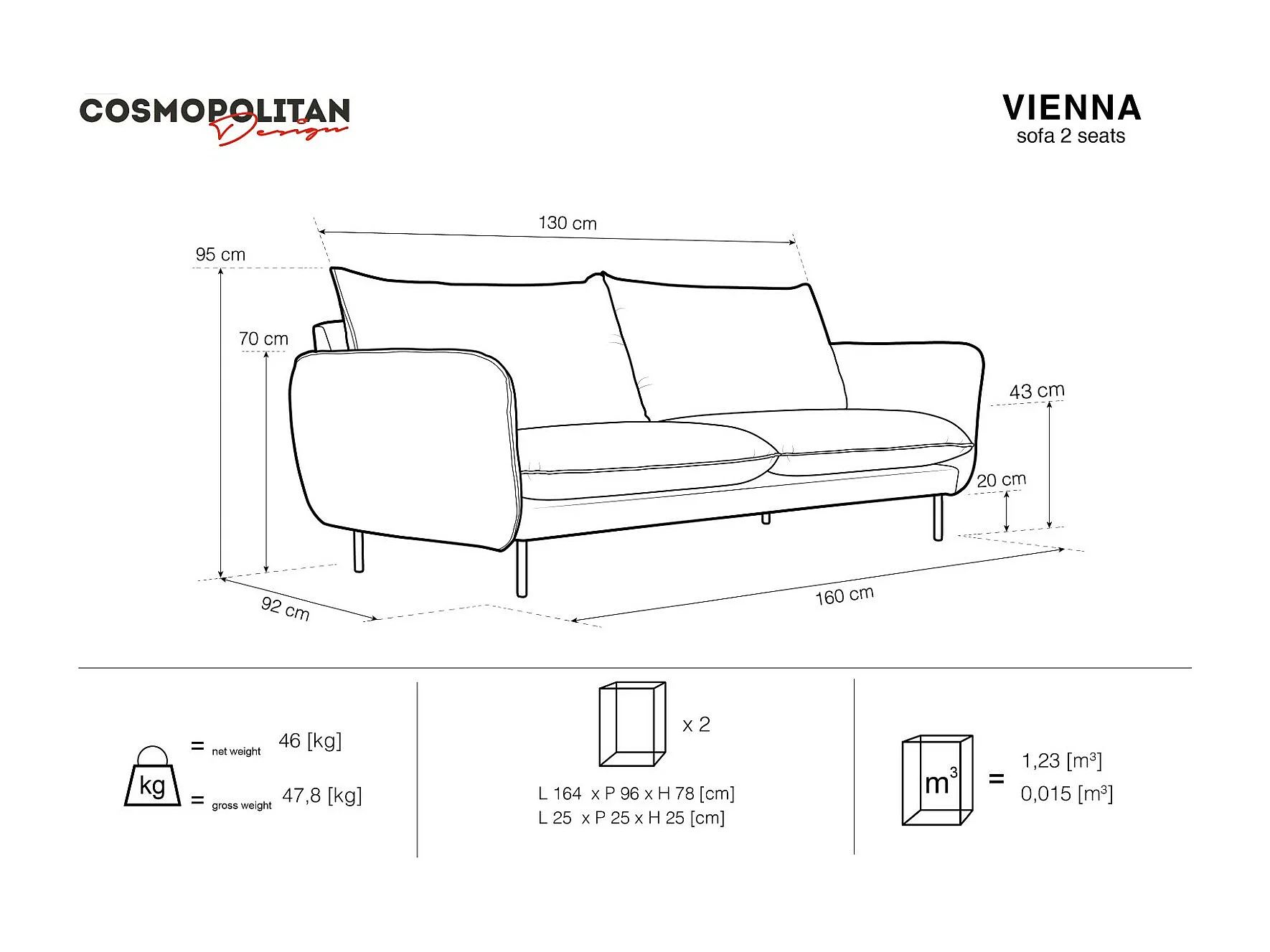 Cosmopolitan Design - Canapé "Vienna" 2 places en tissu structurel beige clair - 160x92x95cm