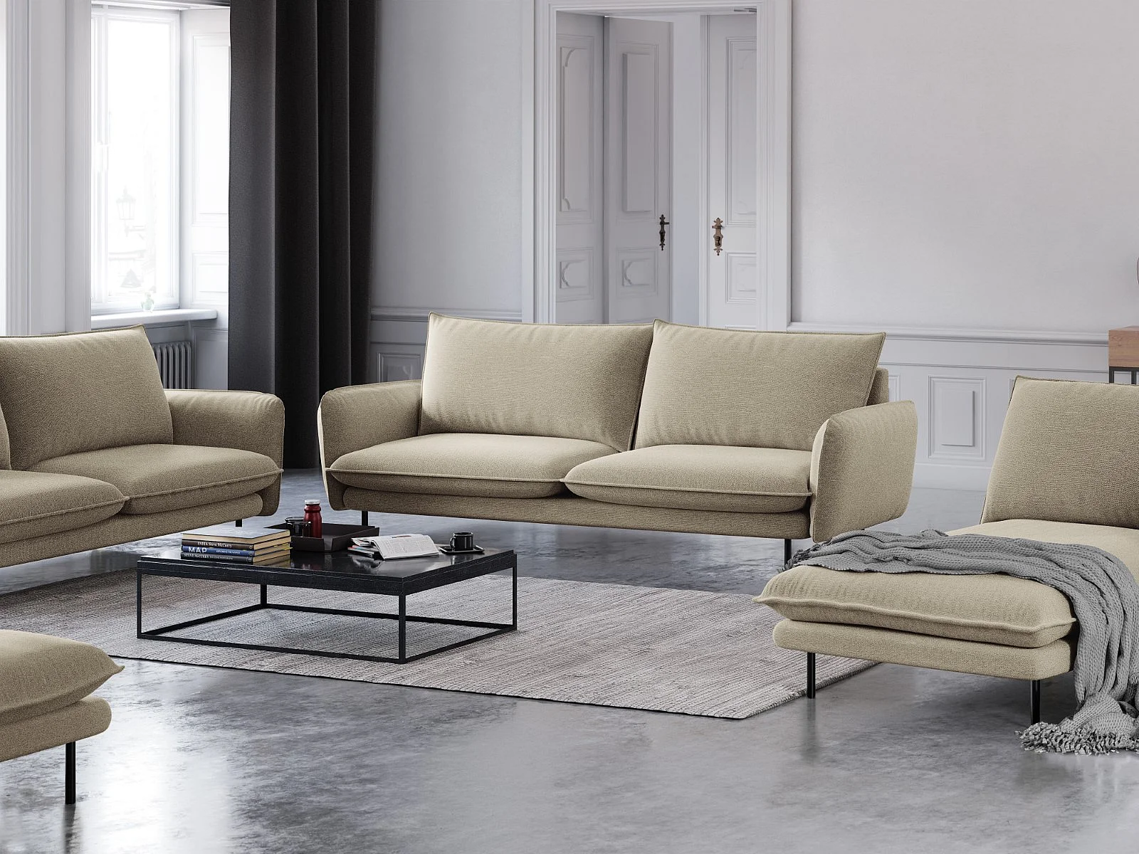 Cosmopolitan Design - Canapé "Vienna" 3 places en tissu structurel beige - 200x92x95cm