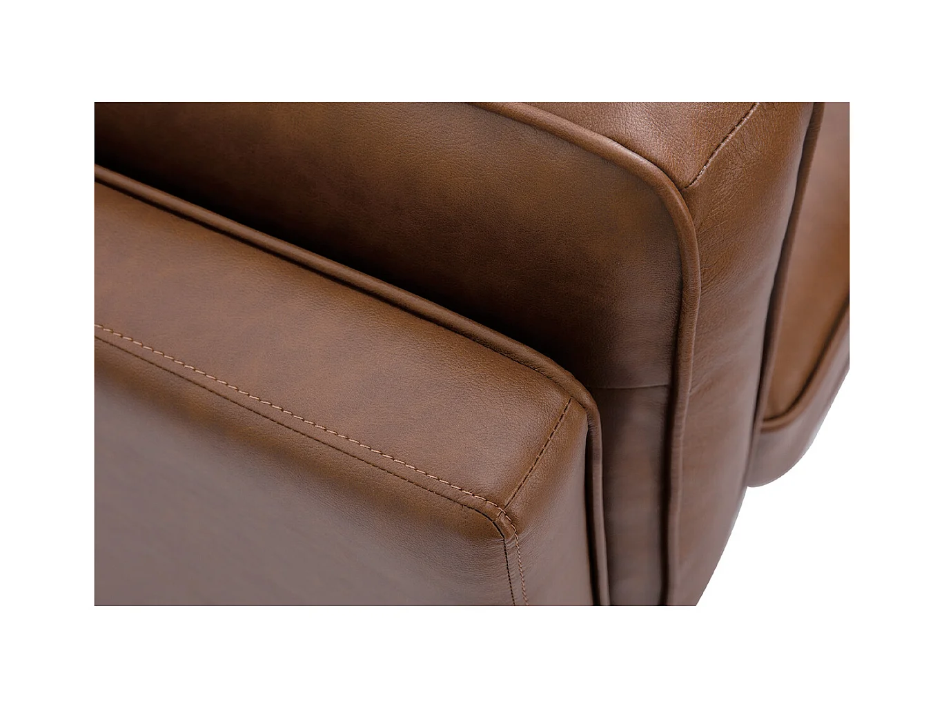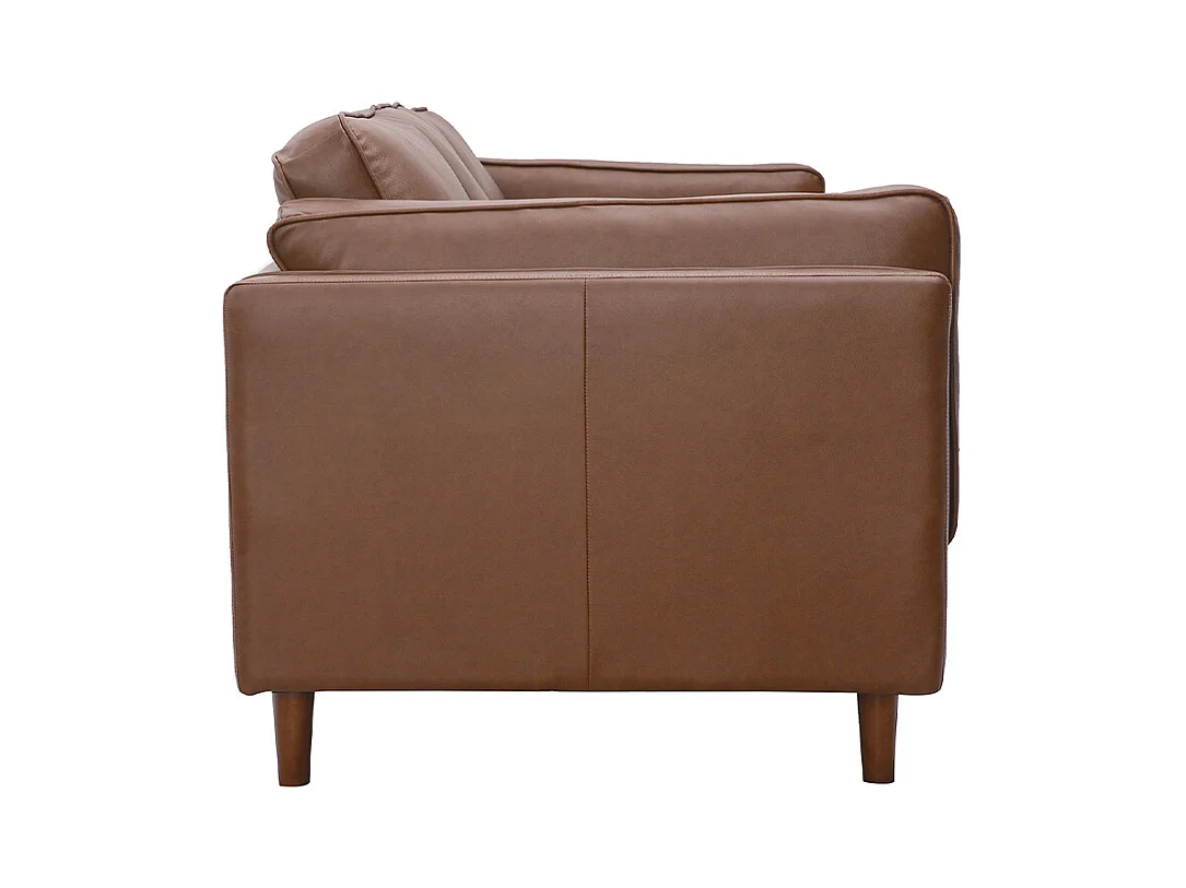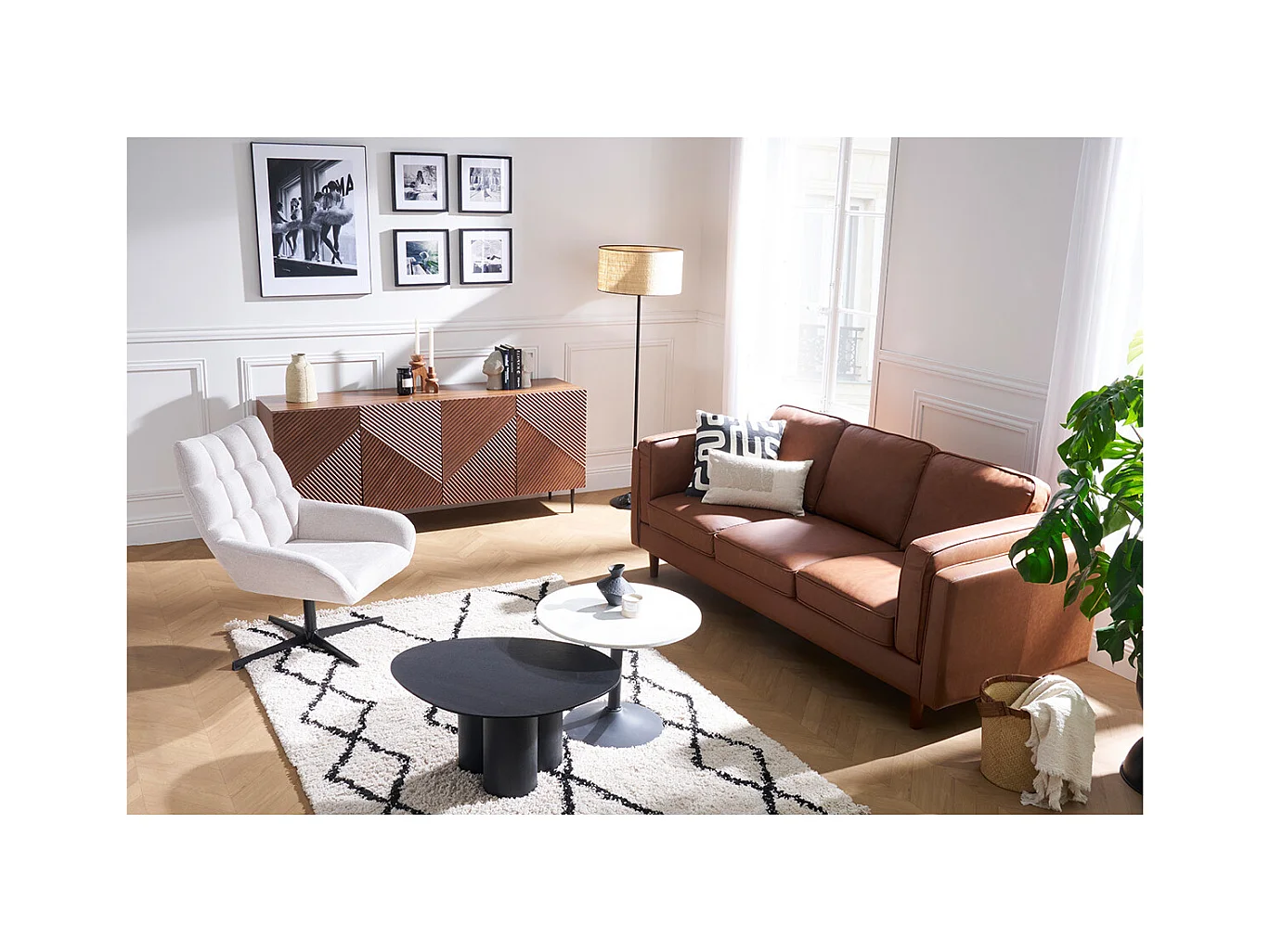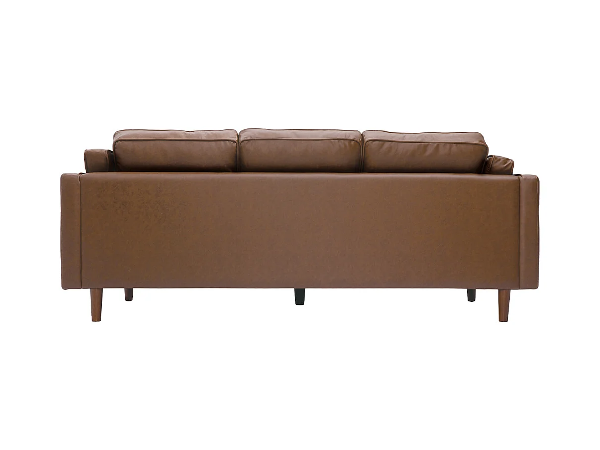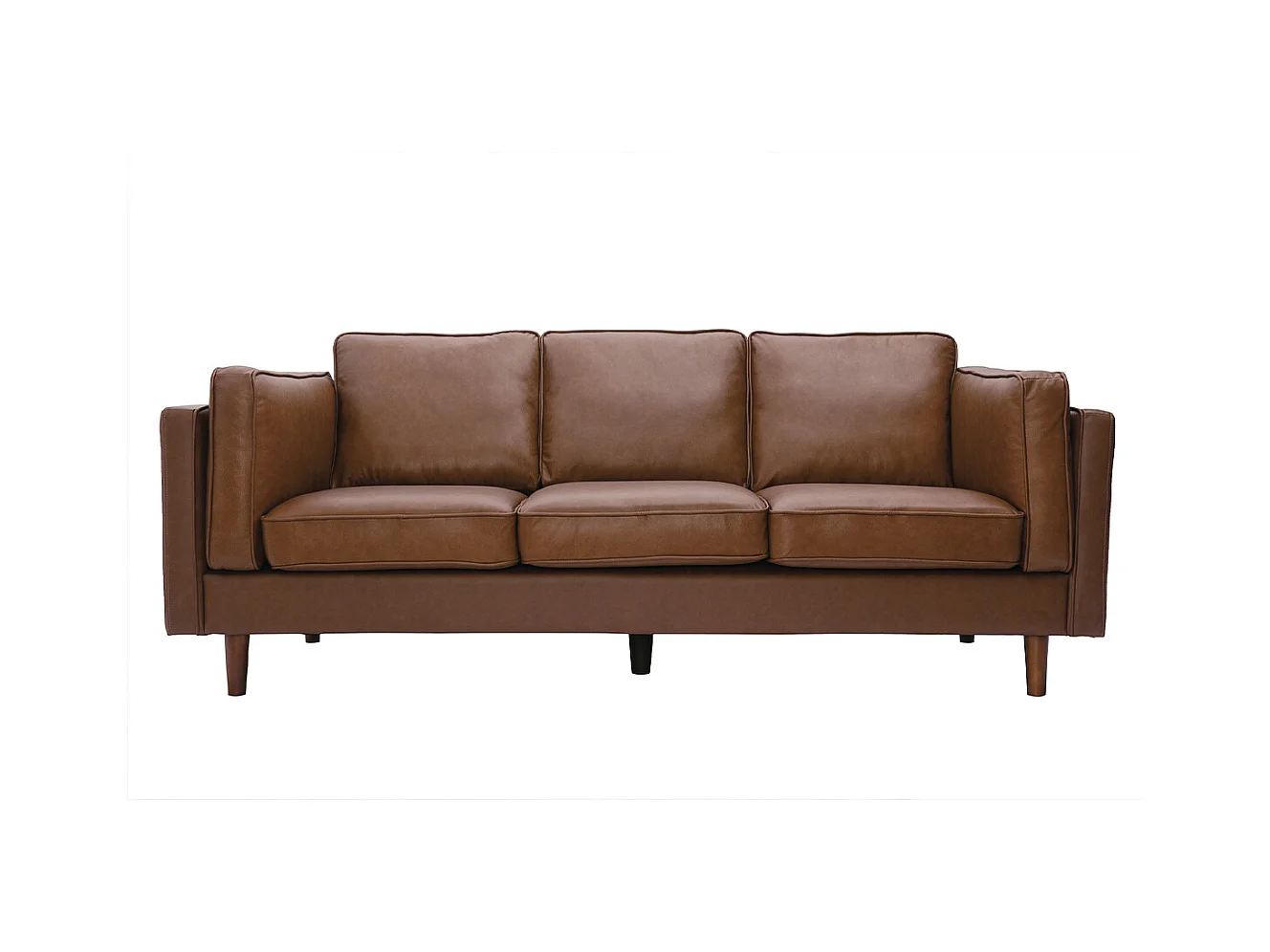 Canapé vintage 3 places cuir marron et bois foncé BRADLEY