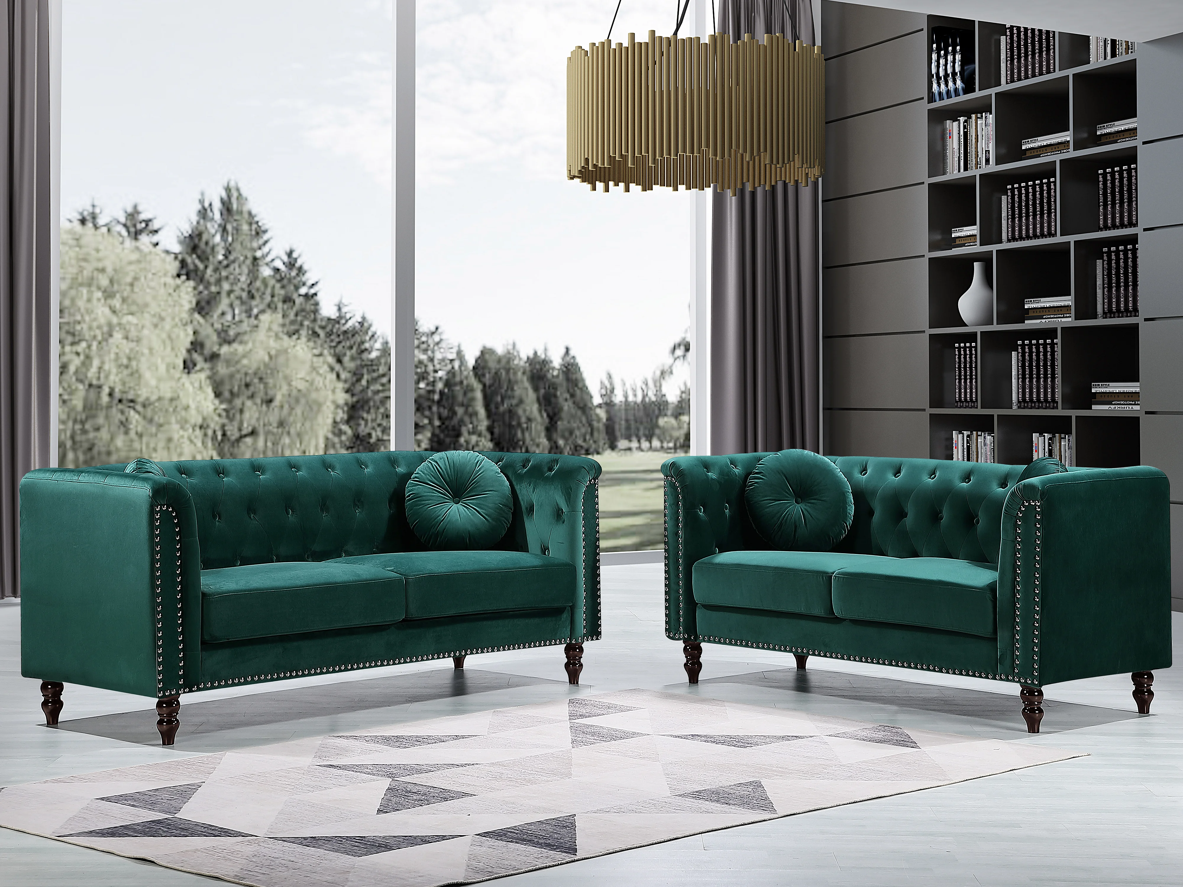 Canapés 3 places et 2 places en velours vert émeraude TURNER