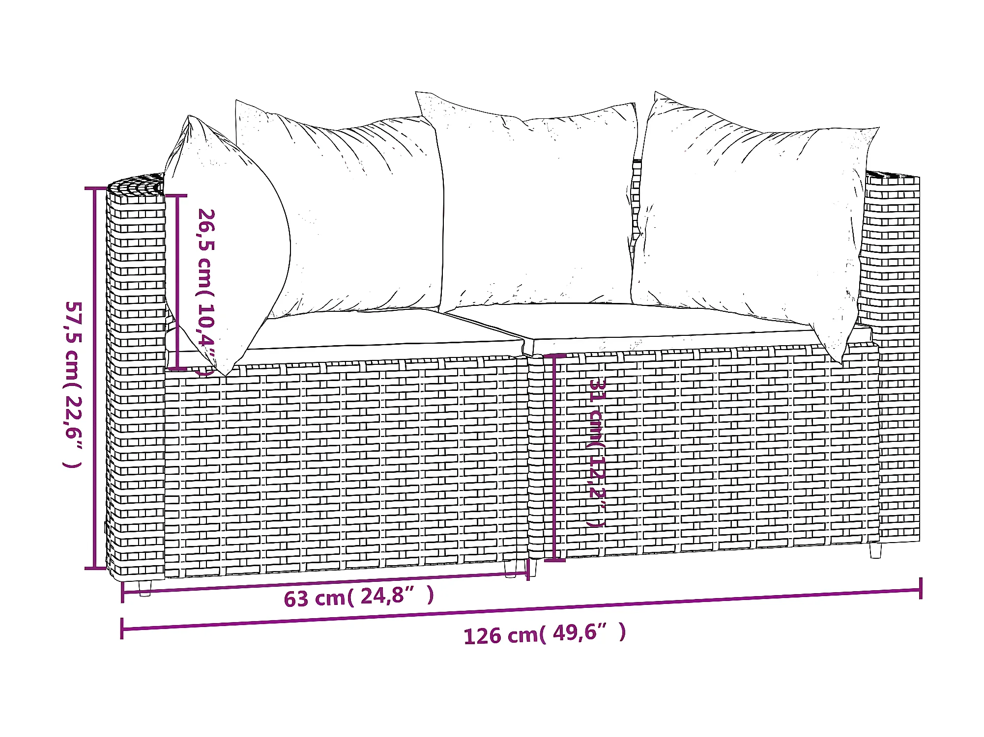 Canapés d'angle de jardin et coussins 2 pcs gris résine tressée