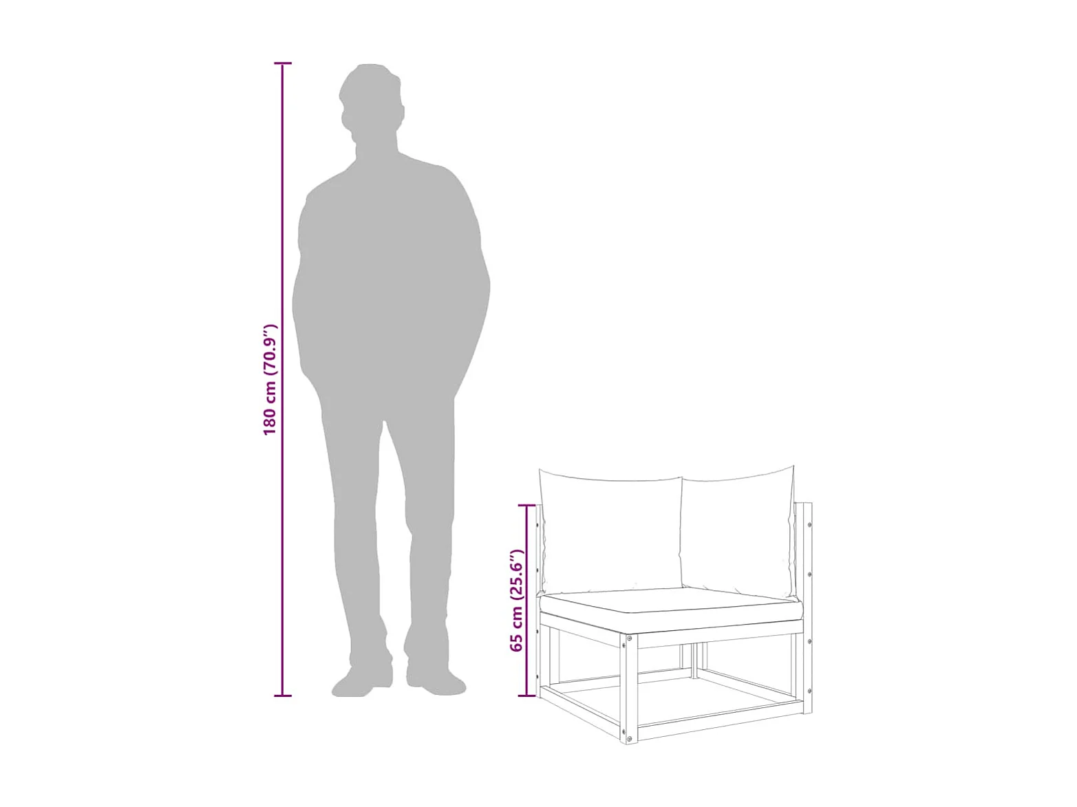 Canapés d'angle de jardin et coussins 2pcs bois massif d'acacia