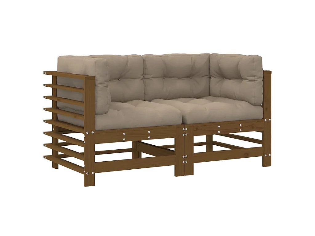 Canapés d'angle et coussins 2pcs marron miel bois de pin massif PWRS16670