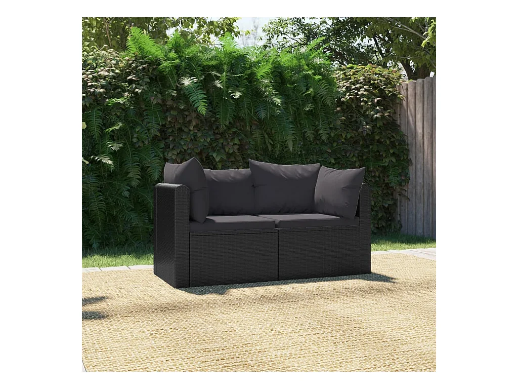 Canapés de jardin 2 pcs avec coussins Résine tressée Noir FR43675