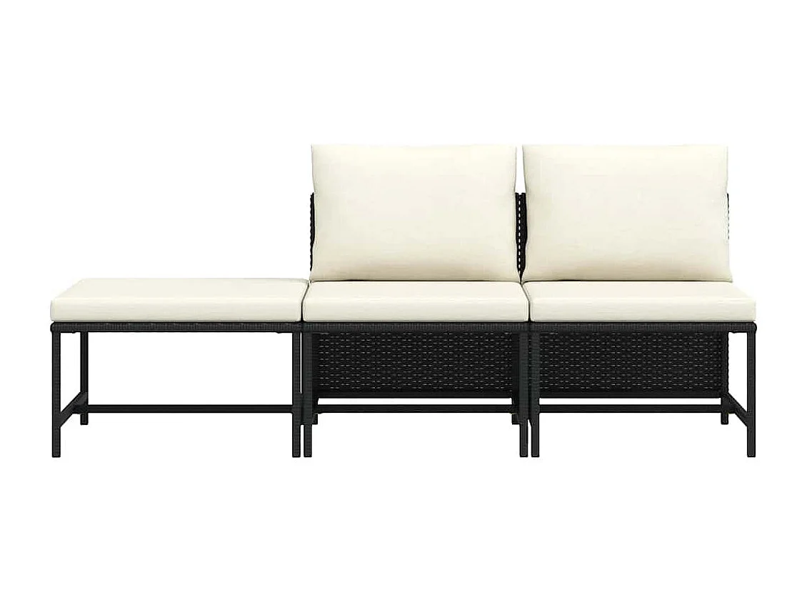 Canapés de jardin 3 pcs avec coussins Noir Résine tressée