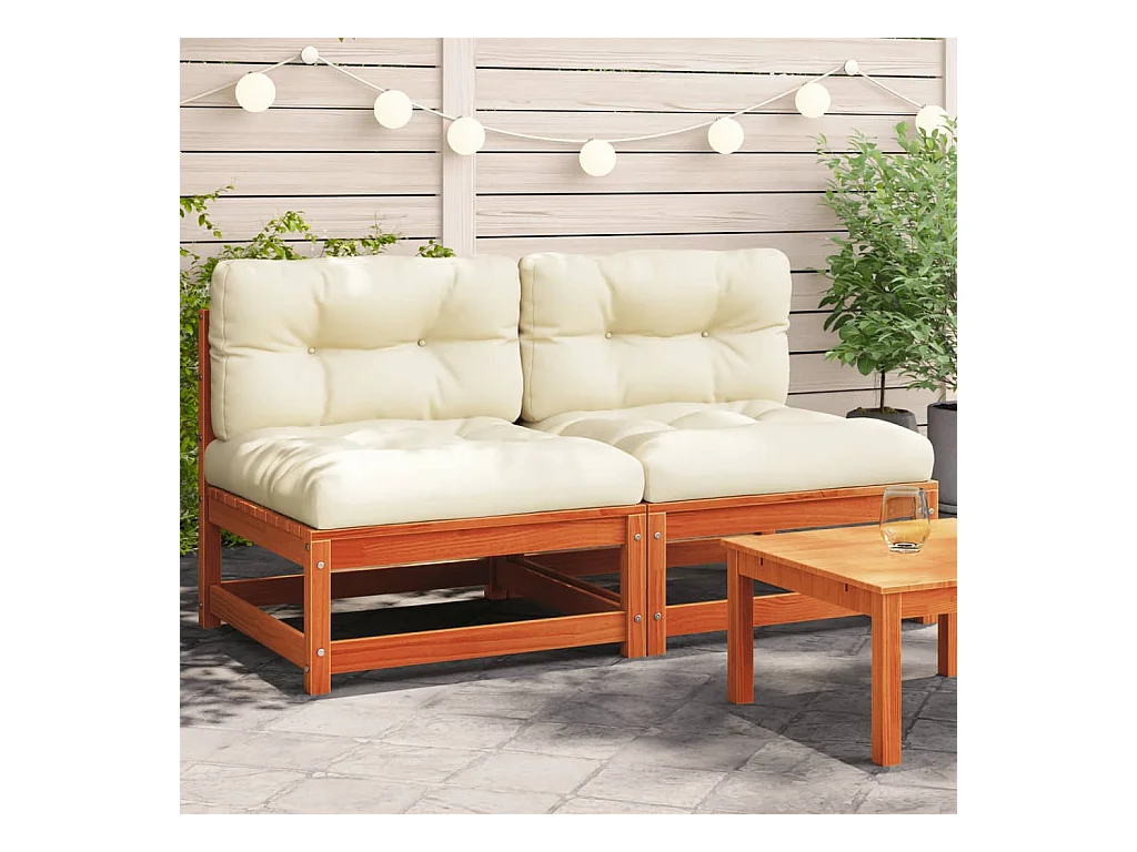 Canapés de jardin sans accoudoirs coussins 2pcs bois massif pin FR56611