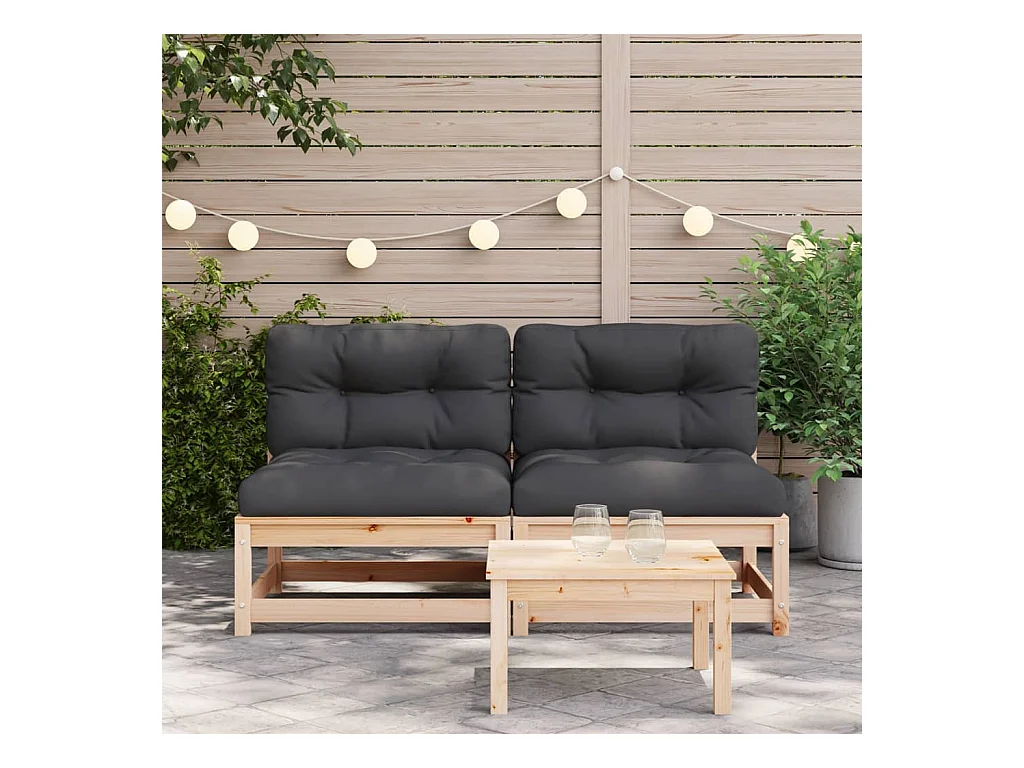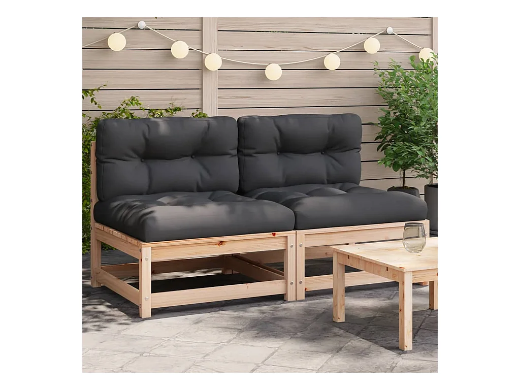 Canapés de jardin sans accoudoirs coussins 2pcs bois massif pin FR61482