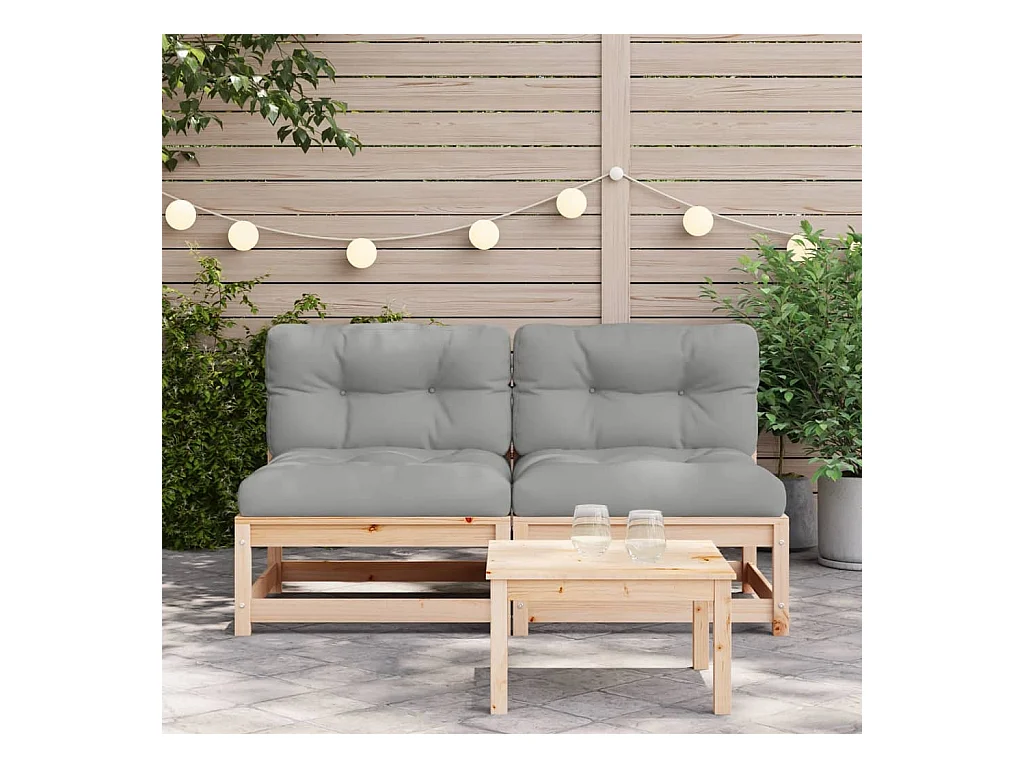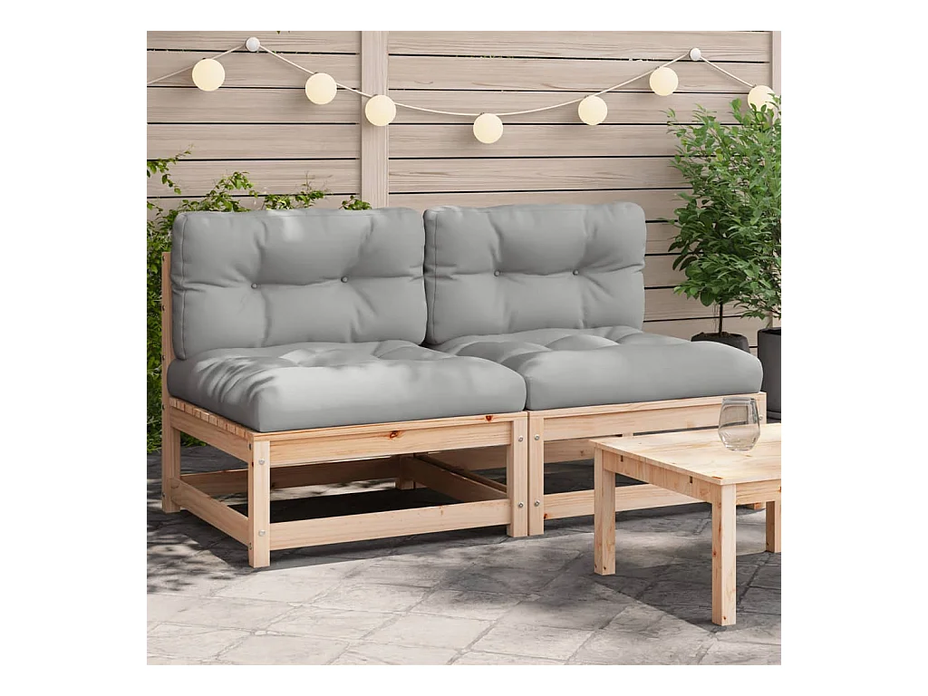 Canapés de jardin sans accoudoirs coussins 2pcs bois massif pin FR97850
