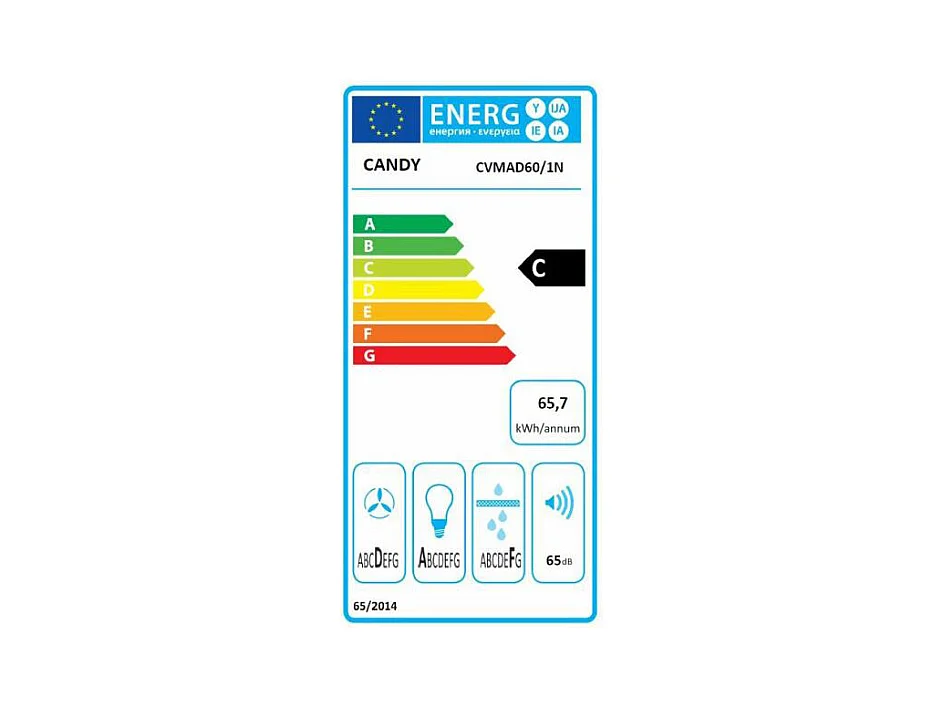 CANDY - CVMAD60/1N - Hotte Inclinee - 463,3m3/h max - 65dB max - 3 Vitesses - L60cm - Noir