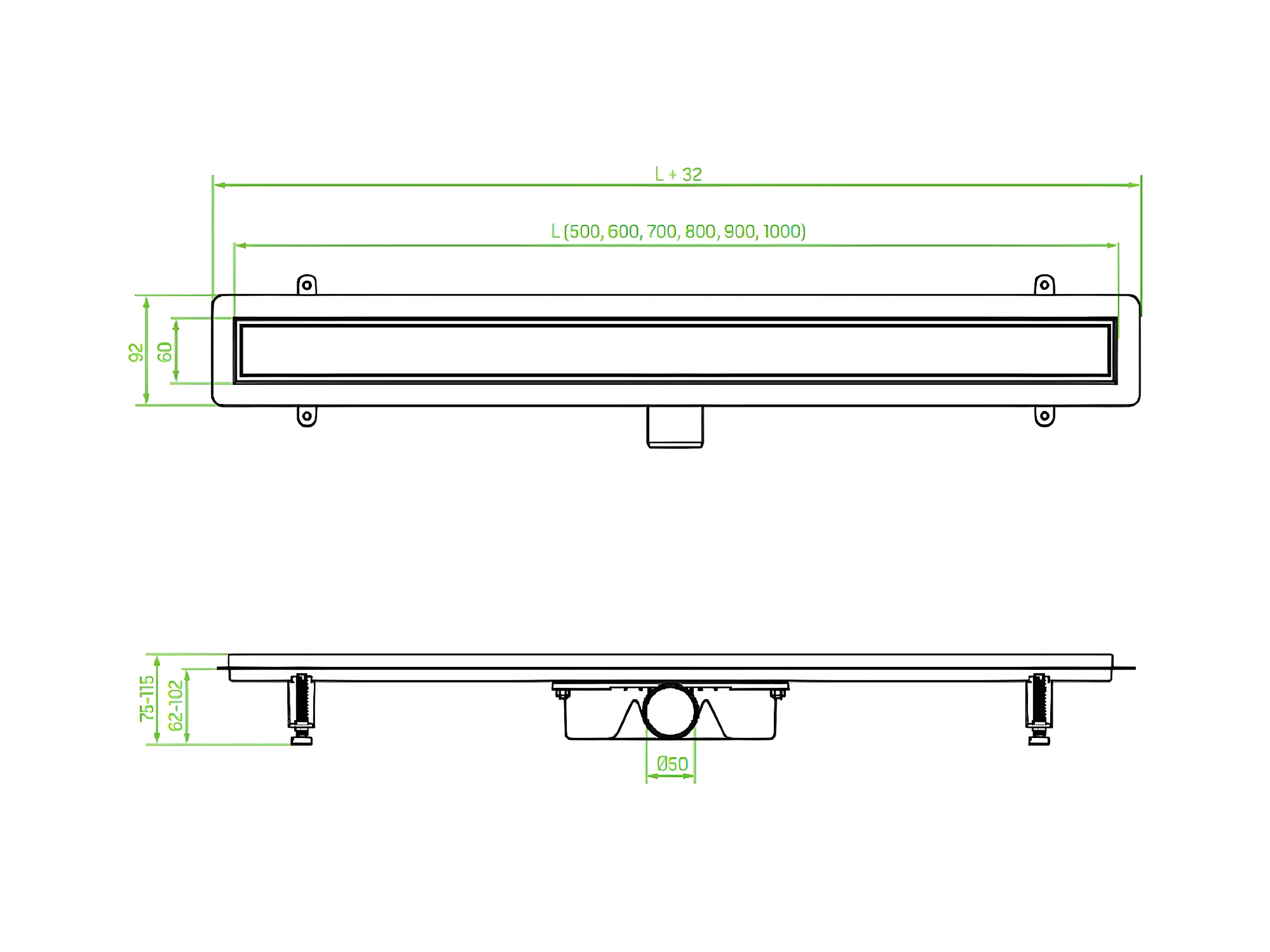 Caniveau de douche BASSO, couleur:doré, longueur:90 cm