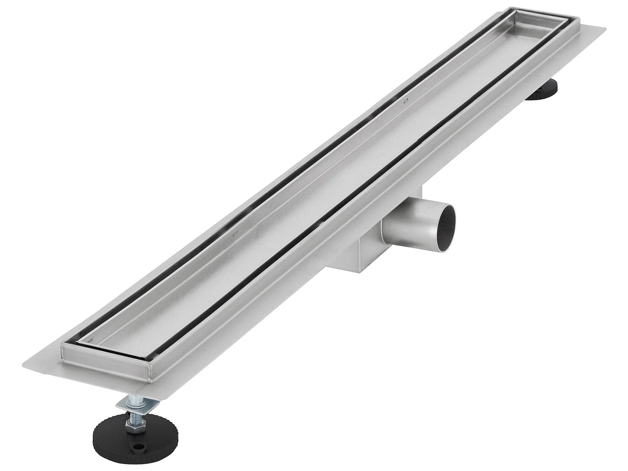 Caniveau de douche en acier inoxydable carrelé 80 cm et siphon Set complet argent plat LuxeBath