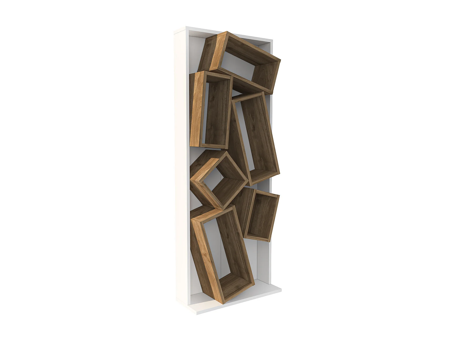 Carmen Bibliothèque Design Géométrique (Blanc et Noyer)