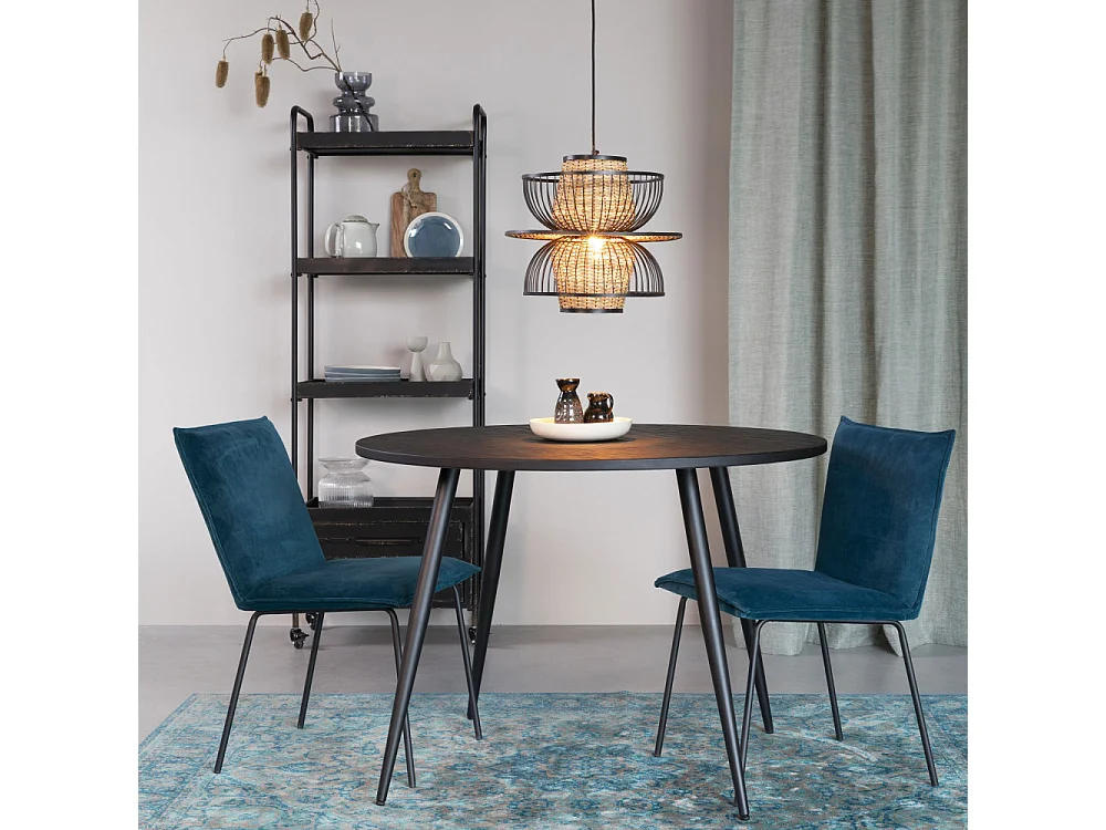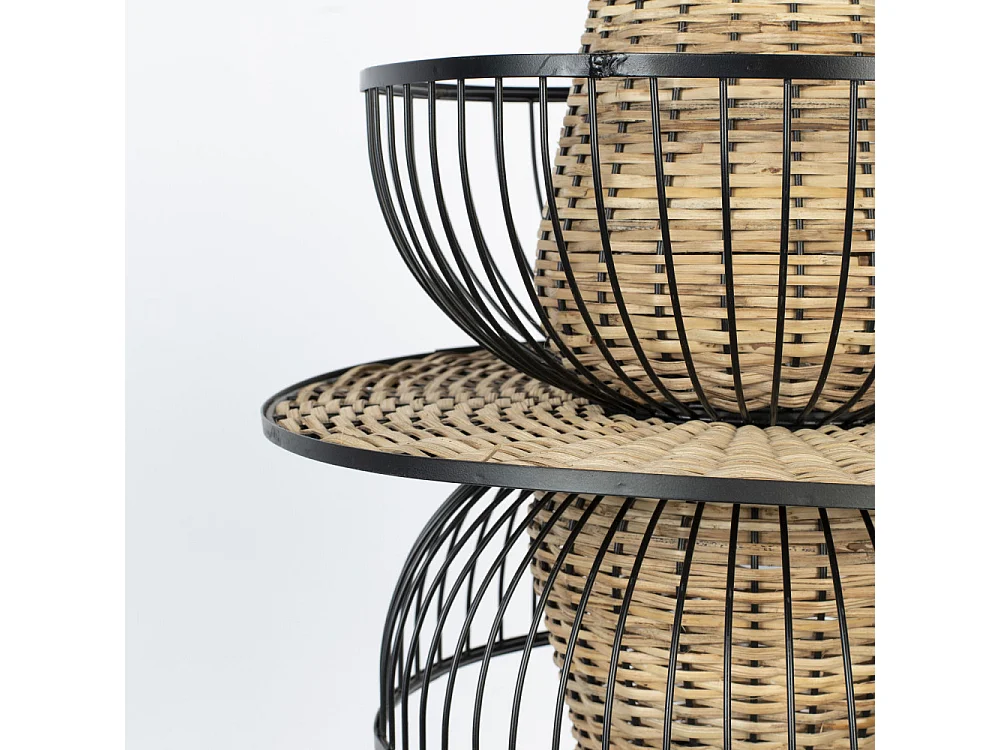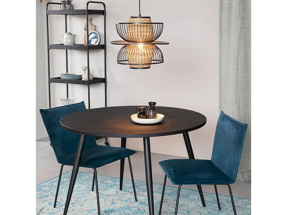 Lampe suspendue, Suspension luminaire en Acier noir et bois de jute coloris naturel