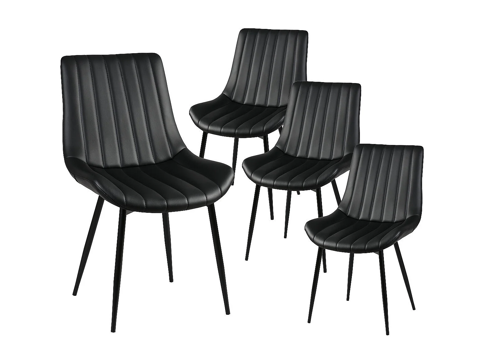 CAROLANN - Lot de 4 Chaises Noires Métal et PVC
