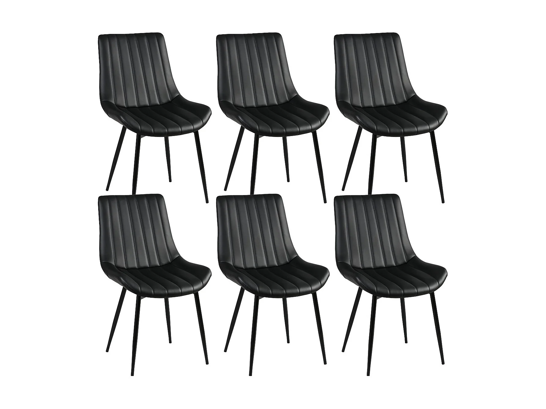 CAROLANN - Lot de 6 Chaises Noires Métal et PVC