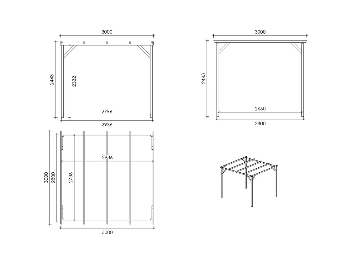 Carport, abri de voiture 3x3 m - 9 m2 - CAR12 - ALTANKA